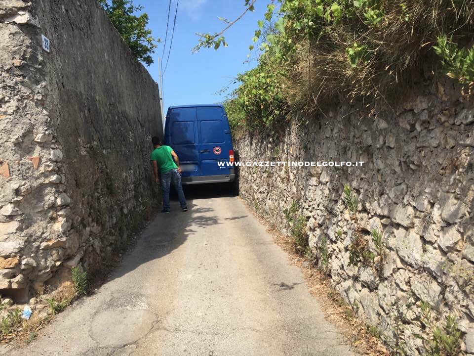 Ancora un furgone bloccato nella stretta Via del Colle a Gaeta.