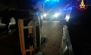 Giunto tempestivamente sul posto, il personale vf, prendeva atto che una Fiat panda, era adagiata su un fianco al centro strada, presumibilmente, dopo aver avuto un incidente.
