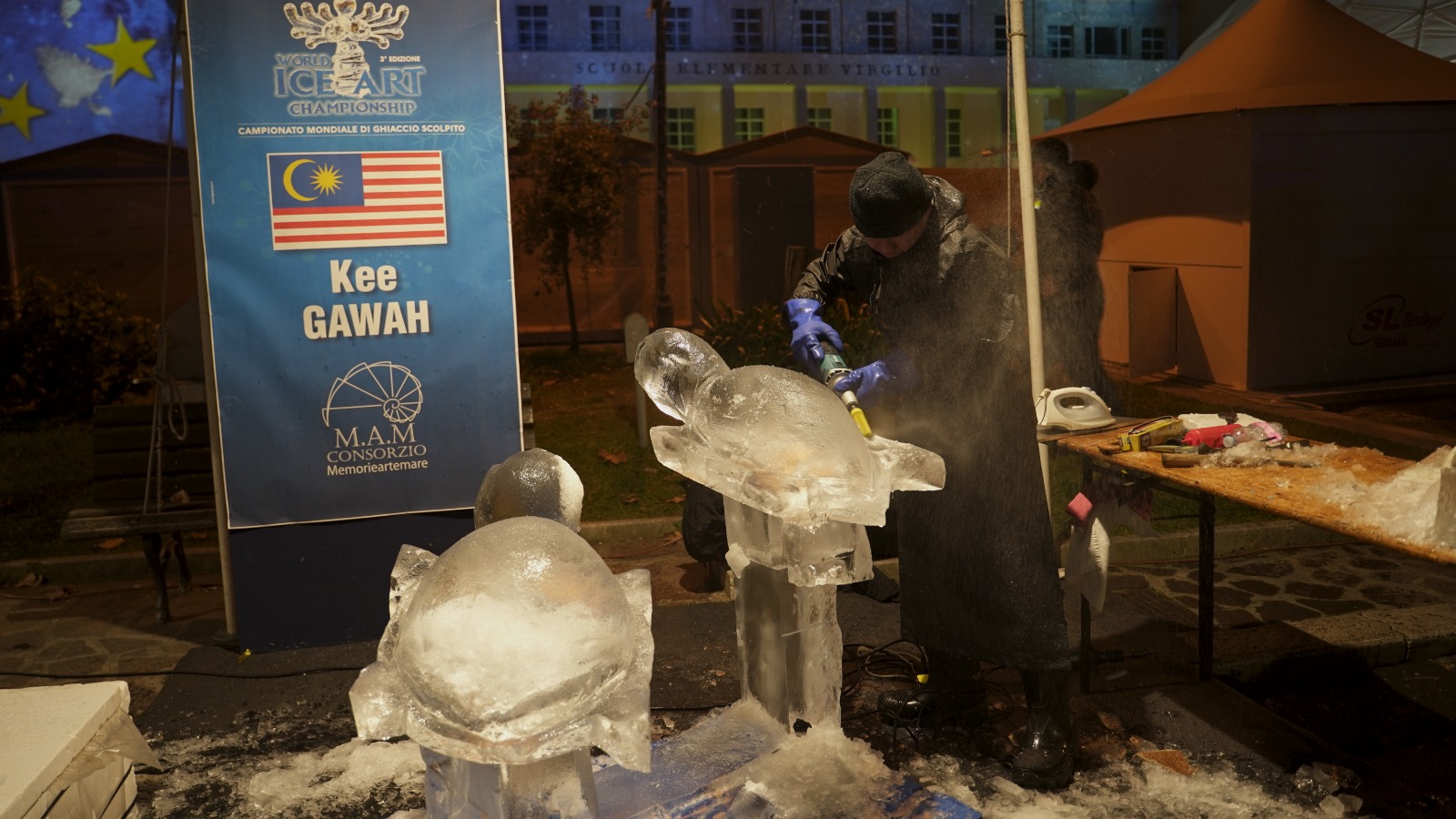 Nella prima giornata gli artisti attraverso le loro sculture di ghiaccio hanno rappresentetato un momento storico della loro Nazione.