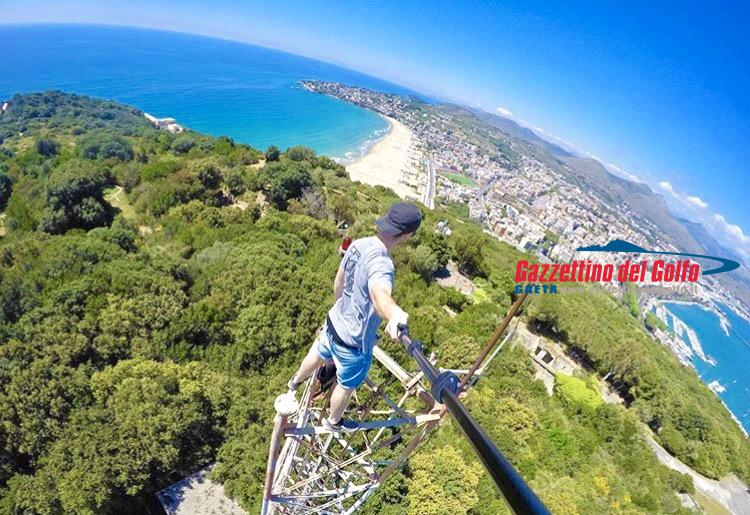 E proprio lo stesso giovane, l’extreme urban free climbing che una anno fa, fu protagonista dell’arrampicata sulla ciminiera della vetreria, che ci regalò una visione assolutamente inedita della città di Gaeta dalla sommità del fumaiolo (LEGGI QUÌ)