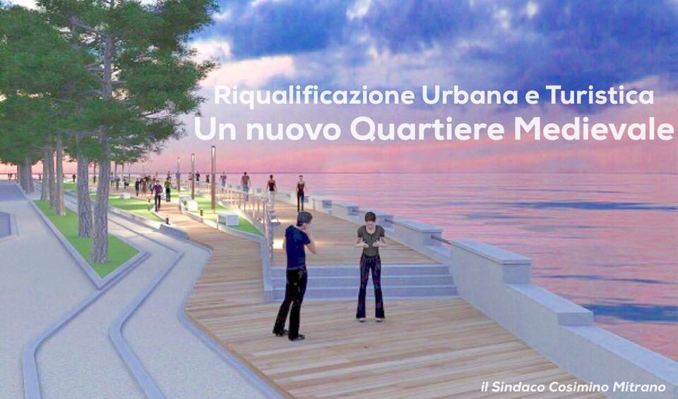 È proprio il primo cittadino Cosmo Mitrano sulla propria pagina Facebook ad annunciare l’ormai imminente partenza dei lavori che vedranno la riqualificazione completa del lungomare nel quartiere medievale della città.