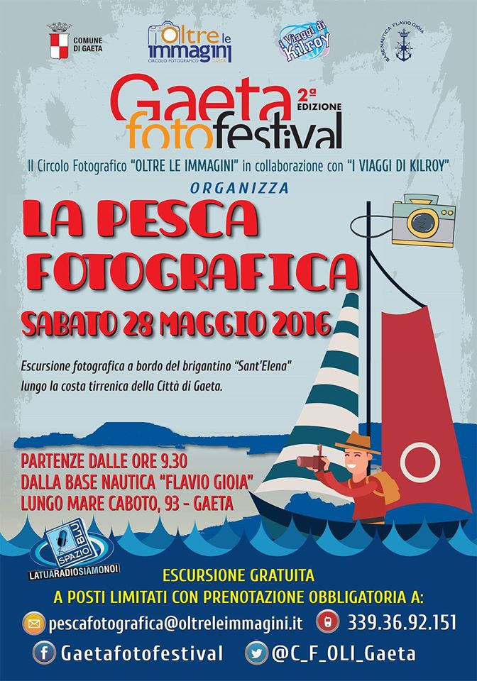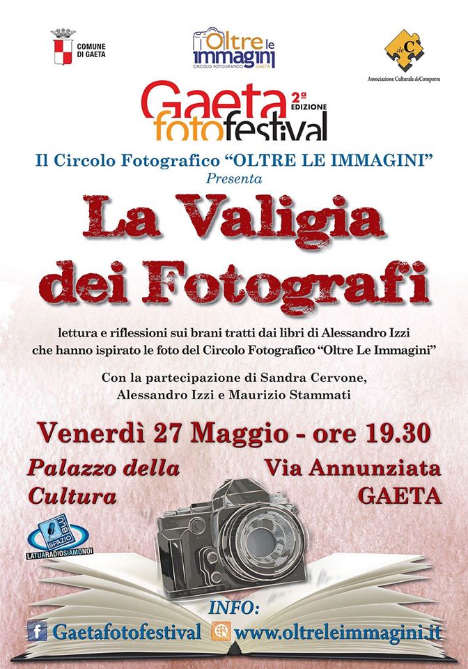 Parte il 27 maggio la II edizione del Gaeta FotoFestival, un evento, realizzato dal Circolo Fotografico “Oltre le Immagini”, per gli appassionati di fotografia di tutte le età, che si svolgerà fino a domenica 29 maggio al piano terra del Palazzo della Cultura, sito in via Annunziata.