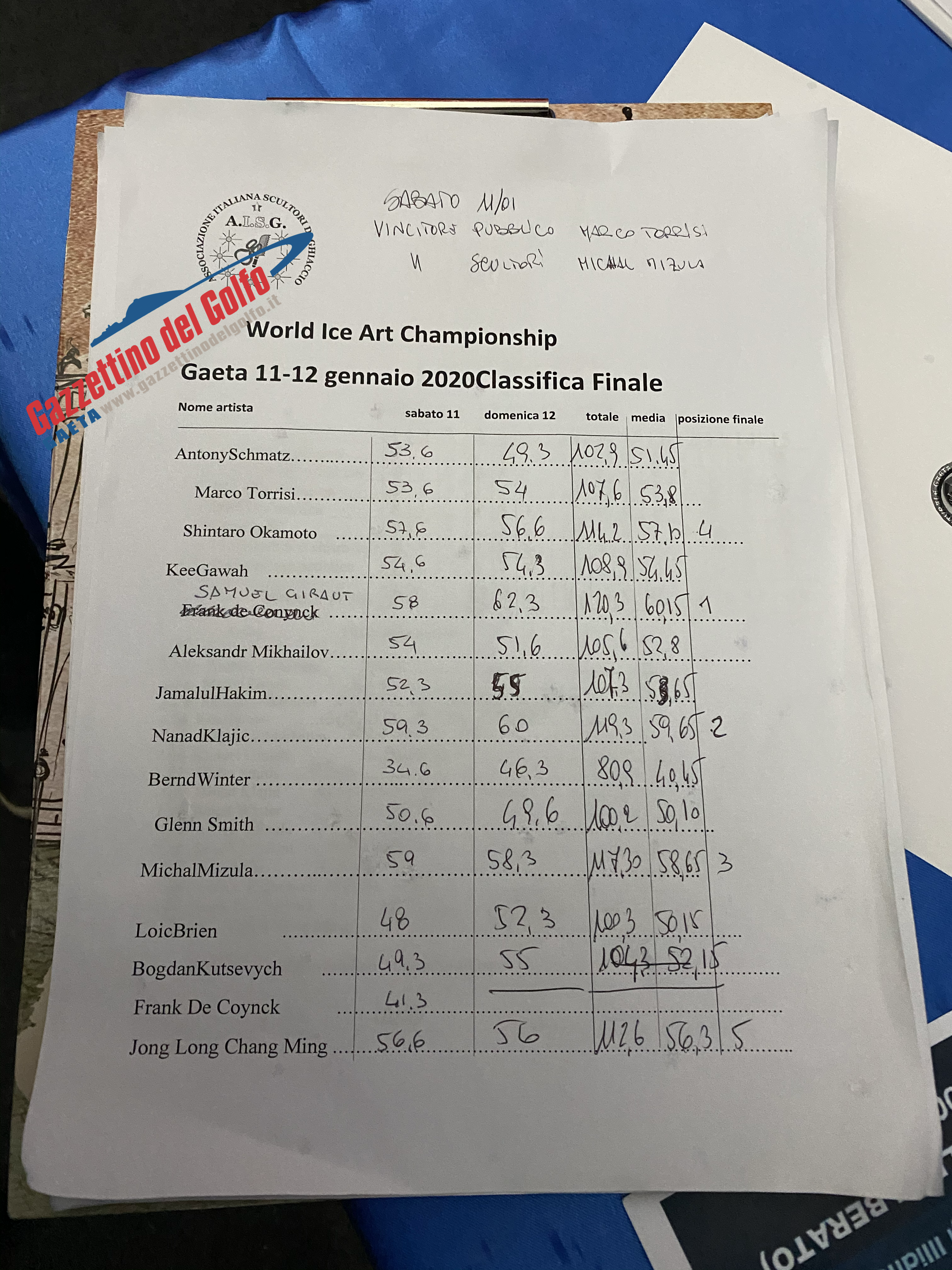 È Samuel Girault ad aggiudicarsi la terza edizione del Campionato Mondiale Scultori di Ghiaccio che si è tenuto dal 10 al 12 gennaio a Gaeta, nell’ambito di “Favole di Luce”.