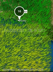 Un vento molto teso, anche se non freddo, sta sferzando sulla costa tirrenica ed in particolare sul Golfo di Gaeta: mentre Formia resta più ‘coperta’, protetta dalla zona montuosa, Gaeta è avvolta da venti sferzanti con raffiche provenienti da Nordest sino a 16 nodi.