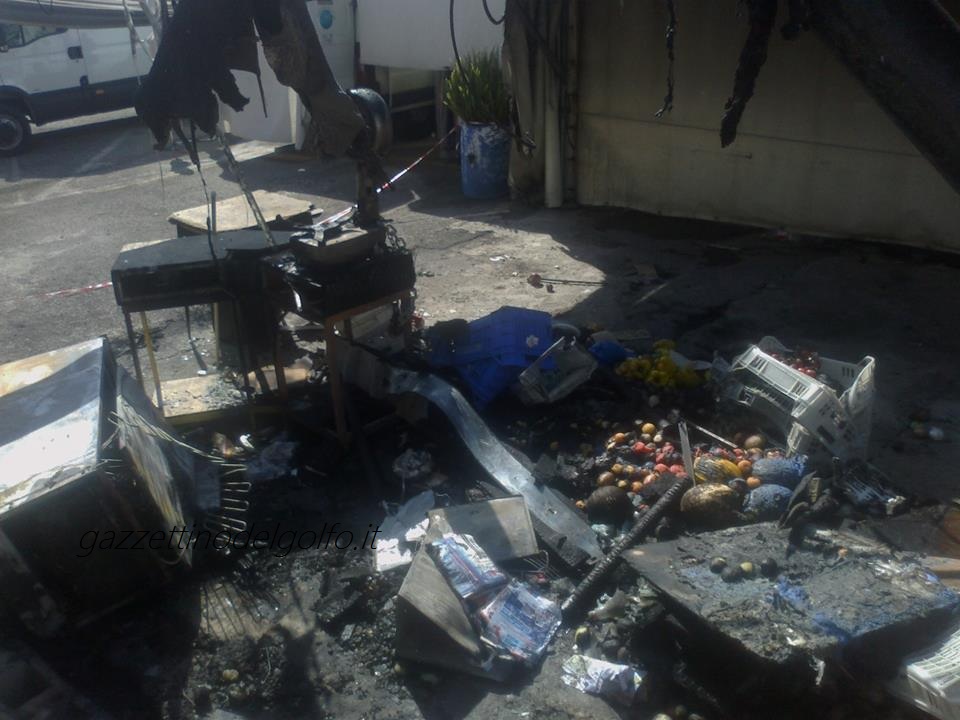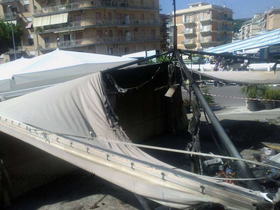 Nella notte ignoti hannno appiccato il fuoco ai tendoni di un chiosco di frutta in via del Piano a Gaeta.
