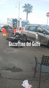Il centauro è caduto rovinosamente in terra riportando una probabile frattura ad un braccio e un trauma cranico. Il centauro è stato trasportato all’ospedale Dono Svizzero di Formia, le sue condizioni non sembrerebbero gravi. Sotto shock la donna che guidava la macchina.