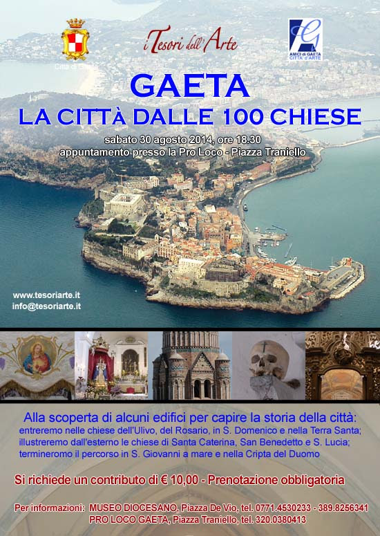 Prenotazione obbligatoria presso: PRO LOCO GAETA, Piazza Traniello, ore 10.00 – 13.00 / 16.30 – 20.00, tel. 320.0380413; MUSEO DIOCESANO, Piazza De Vio, giovedi – domenica ore 18.00 – 24.00, tel. 0771.4530233 – 389.8256341