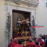 Le statue, attorniate da un vasto pubblico di devoti, nei cui visi si leggeva una forte emozione, in seguito all’uscita dalla Parrocchia omonima, si sono recate verso il rituale percorso: via Indipendenza (lato Calegna), con la sosta di rito alla Chiesa antica dei Santi Medici, in seguito hanno proceduto fino alla chiesa di San Carlo Borromeo.