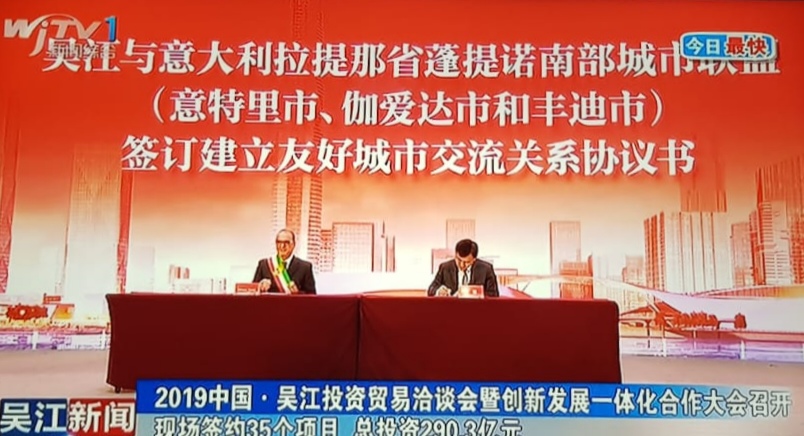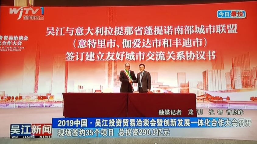 “Una trasferta molto positiva che ha visto protagonista Gaeta e tutto il Golfo nel corso di un meeting internazionale seguito dai più importanti media nazionali cinesi come WjTv – Wu Jiang News”. Così il sindaco di Gaeta, Cosmo Mitrano, sulla sua pagina Facebook, al ritorno dal viaggio in Cina.