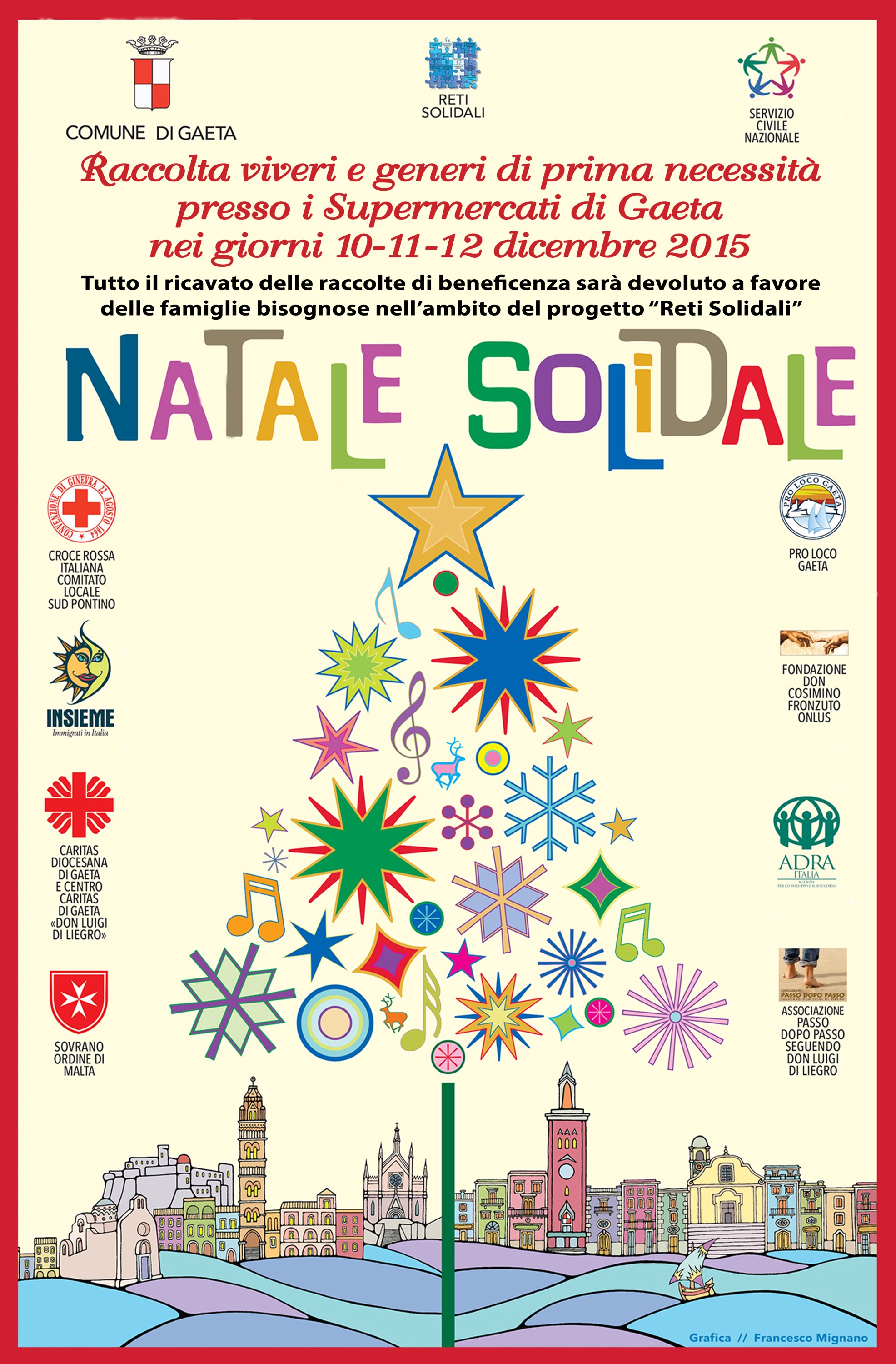 Inizierà mercoledì 10 dicembre, per proseguire l’11 ed il 12, “Natale Solidale” l’iniziativa di raccolta viveri e beni di prima necessità, promossa e coordinata dal Comune di Gaeta, che vede il coinvolgimento attivo dei volontari di Servizio Civile del Comune e dei volontari di Croce Rossa, Sovrano Ordine di Malta, Caritas Diocesana, ADRA Chiesa Cristiana Avventista, organizzati nella Rete Solidale dal Dipartimento Benessere Sociale del Comune.