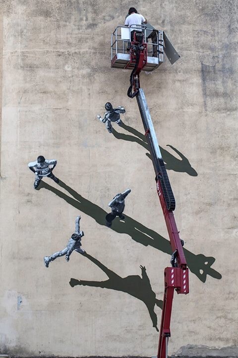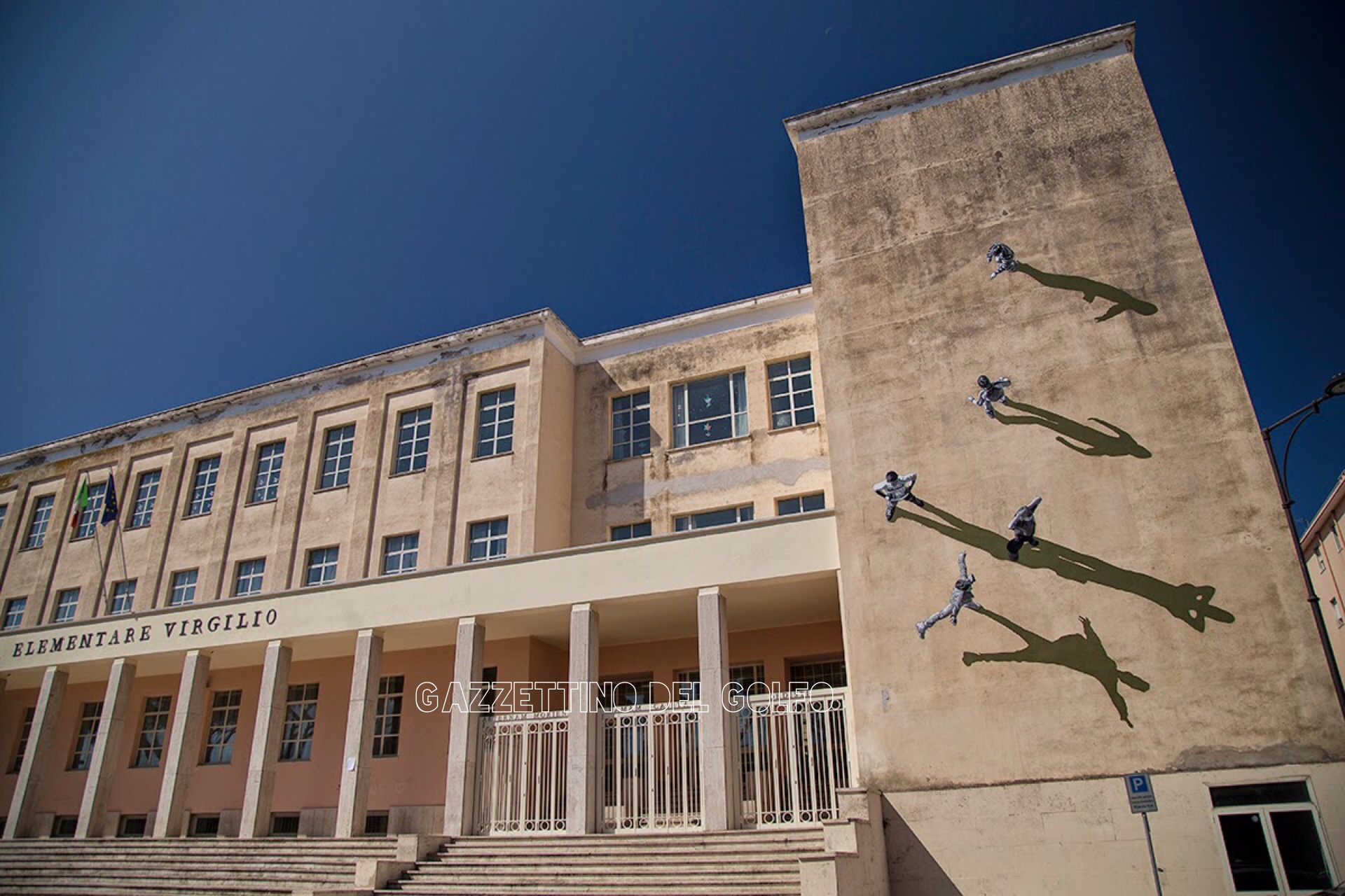Una vera e propria opera d’arte tridimensionale realizzata dall’artista norvegese meglio conosciuto come Strock nel luglio 2014 sulla facciata dell’edificio scolastico Virgilio a Gaeta, si piazza all’8º posto tra i “opere di strada” più popolari votate dagli appassionati della StreetArtNews. Nell’opera Strok ha utilizzato una particolare tecnica denominata “stencil” in 3D, che ha come protagonisti bambini che sembrano saltare con energia.