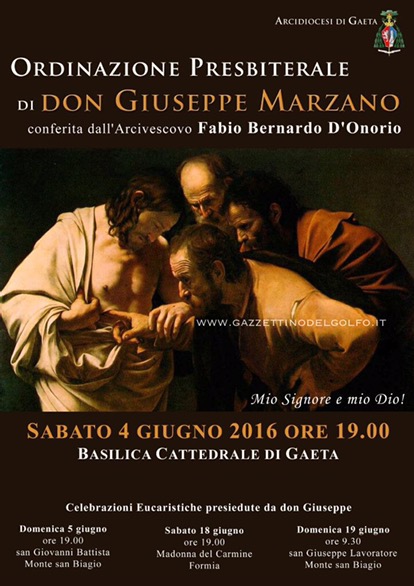 Sabato 4 giugno alle ore 19:00 nella Basilica Cattedrale di Gaeta mons. Fabio Bernardo D’Onorio ordinerà Presbitero il diacono don Giuseppe Marzano.