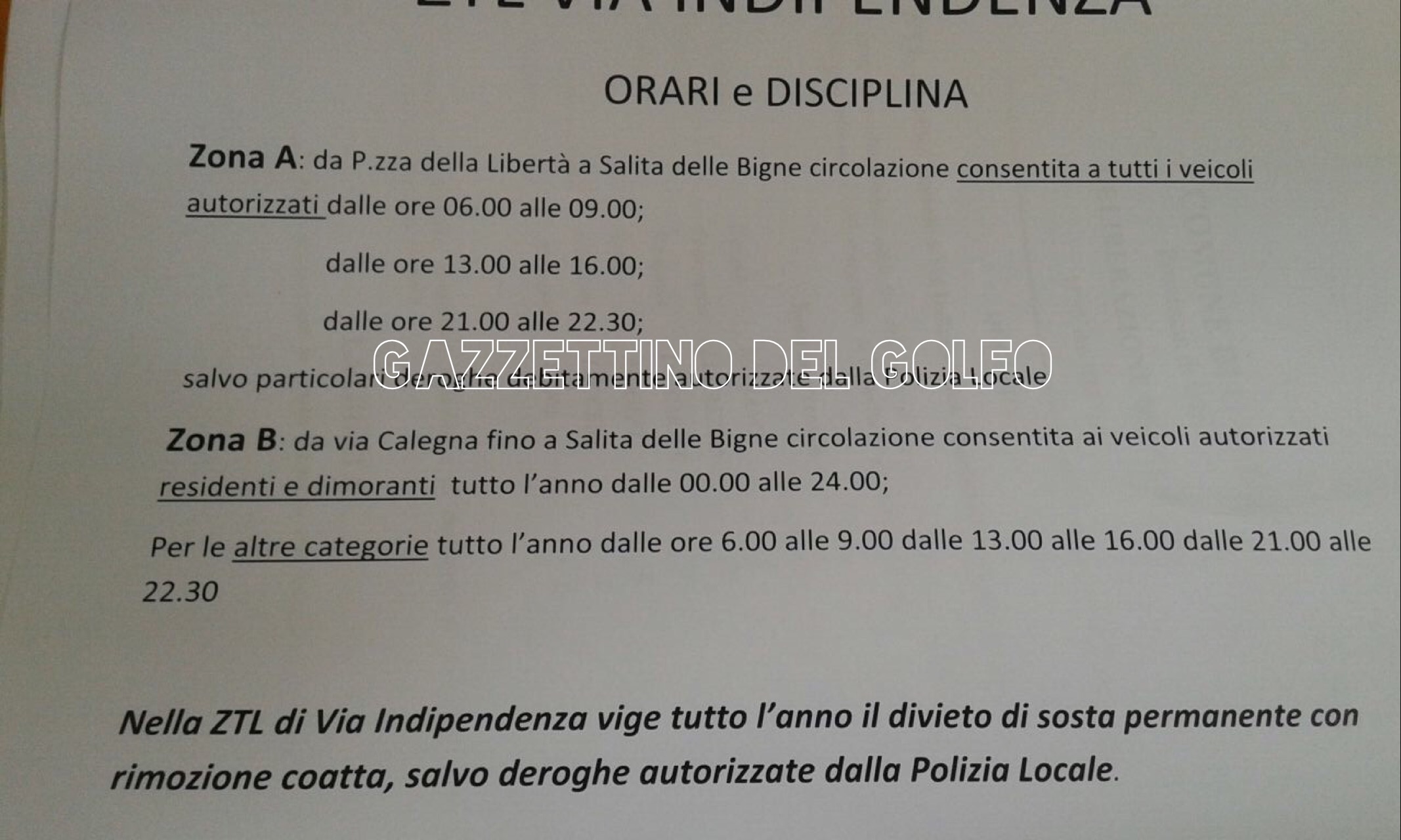 Lo sportello aprirà esclusivamente dalle 14:00 alle 17:00 per i residenti di via indipendenza, dedicando una postazione per i residenti della Zona A (Piazza Della Libertà – Salite Le Bigne) e Zona B (Piazza Calegna – Salita Le Bigne).
