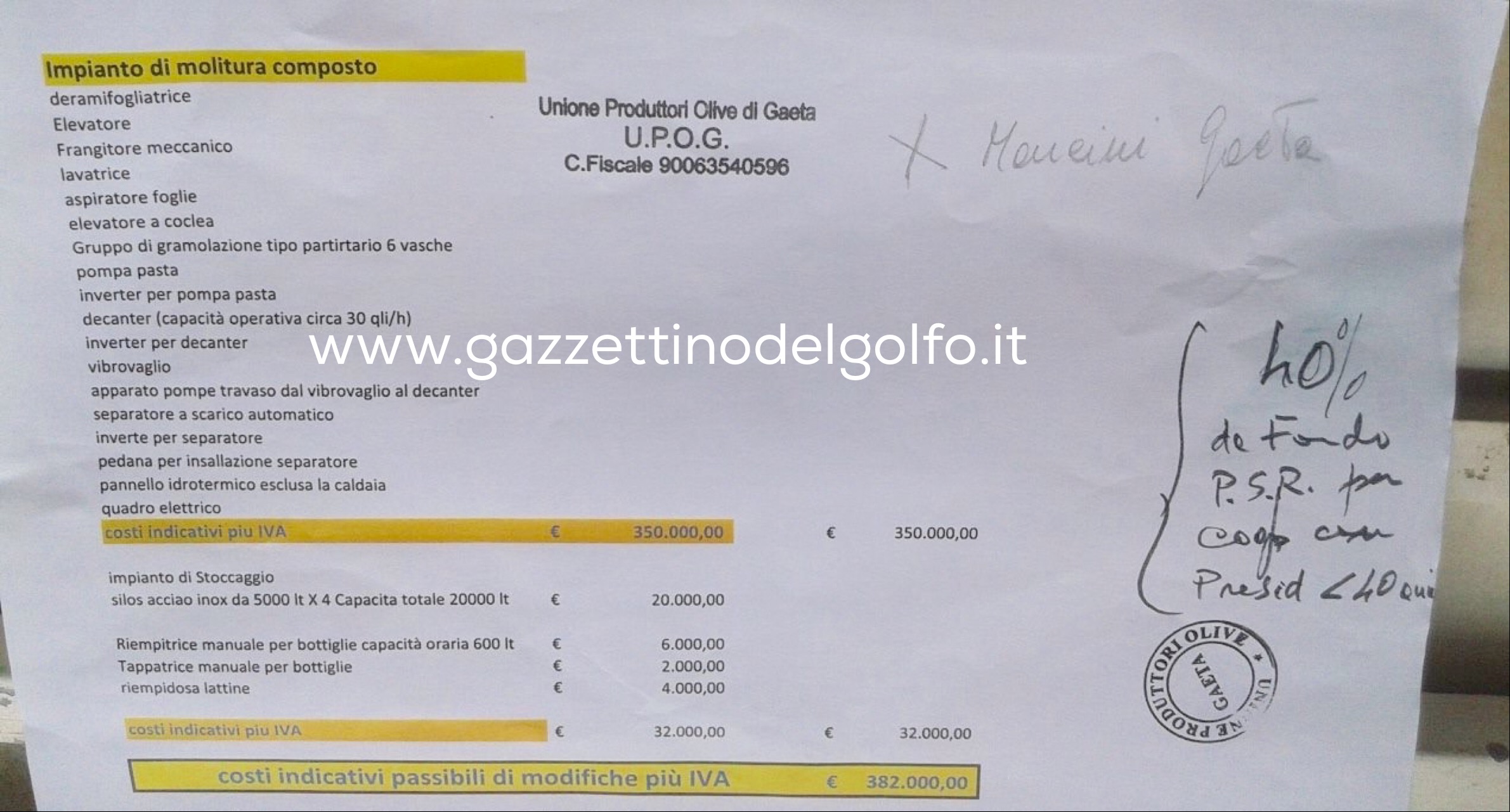 È stato presentato alla prima Assemblea dell’Unione Produttori Olive di Gaeta il piano finanziario sul costo di un frantoio da insediare a Gaeta.