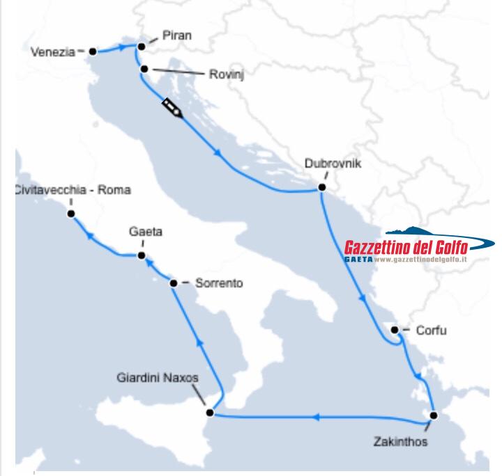 Gaeta sempre più meta di prestigio, basti guardare le tappe della nave da crociera: prima di toccare la nostra città, visiterà Venezia, Piran, Rovinj, Dubrovnik, Corfù, Zakinthos, Giardini Nacos, Sorrento e poi Gaeta.