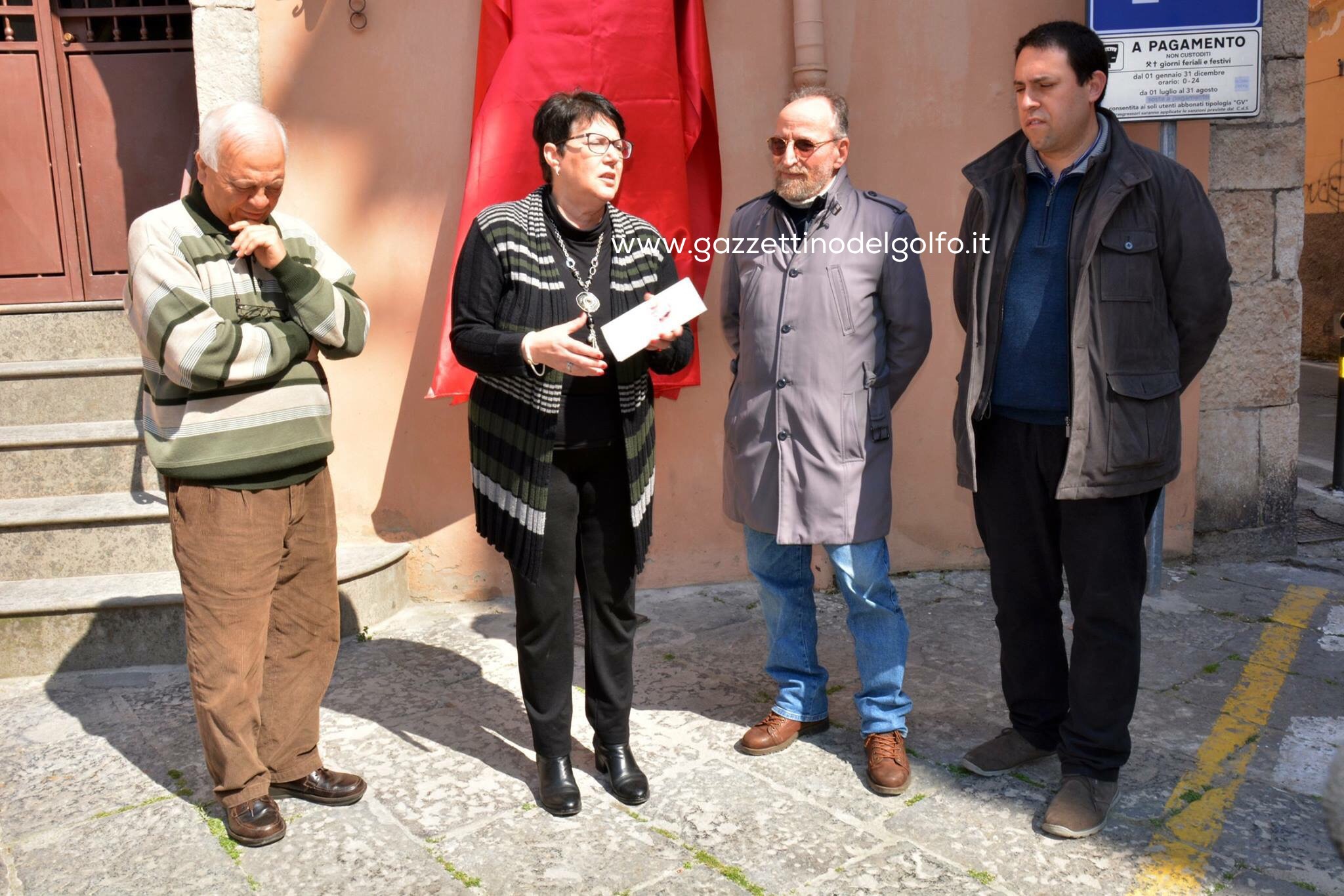 Il Comune di Gaeta rappresentato dall’Assessore alla Cultura Francesca Lucreziano, in collaborazione con la Pinacoteca Comunale d’Arte Contemporanea, l’Associazione Novecento, il Centro Polivalente d’Arte e Spettacolo La Ribalta e l’Associazione I Tesori dell’Arte, hanno provveduto ad apporre la targa sulla facciata del Palazzo Gioia, ultima dimora del Maestro, in Piazza Traniello.