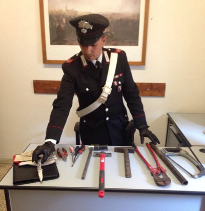 La refurtiva già trafugata interamente, veniva rinvenuta a bordo di un furgone, con targa rumena, unitamente a diversi attrezzi da scasso ed un coltello a serramanico con una lama della lunghezza di cm 7.5, il tutto sottoposto a sequestro.
