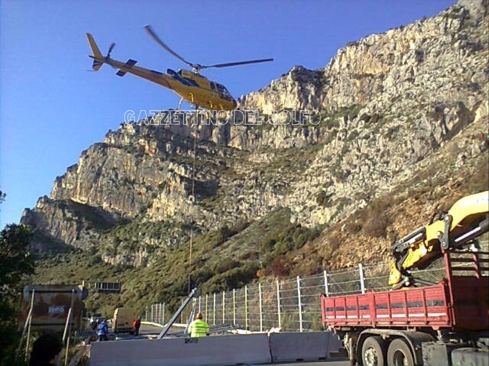Sono iniziati nella giornata odierna i lavori per la messa in sicurezza della S.S. Flacca, chiusa al traffico da alcune settimane a causa di una frana che ha invaso la carreggiata. I lavori di installazione dei pali di supporto della rete paramassi, vengono realizzati attraverso l’indispensabile ausilio di un elicottero che preleva le strutture da terra posizionandole nelle mani degli operai presenti sul costone.