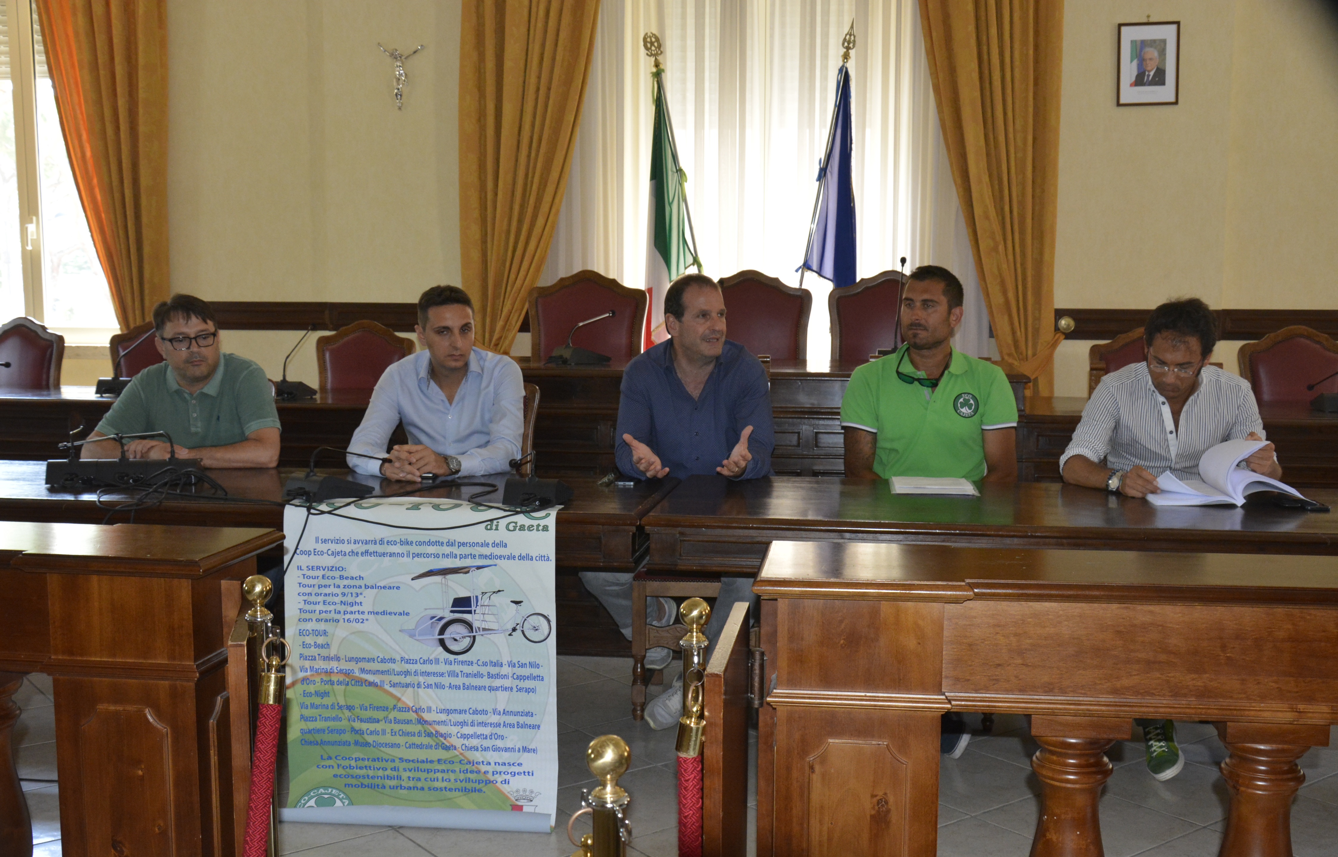 Un nuovo passo verso la mobilità sostenibile nel Comune di Gaeta. Questa mattina, presso l’Aula Consiliare del Palazzo Comunale, è stata presentata una nuova e brillante iniziativa patrocinata dal Comune di Gaeta, promossa dal collaboratore del Sindaco delegato alla Sicurezza del Comune di Gaeta, Raffaele Di Tucci, e realizzata dalla Cooperativa Sociale Eco Cajeta: “Gaeta Eco Tour”, un progetto che coniuga mobilità urbana sostenibile e turismo.