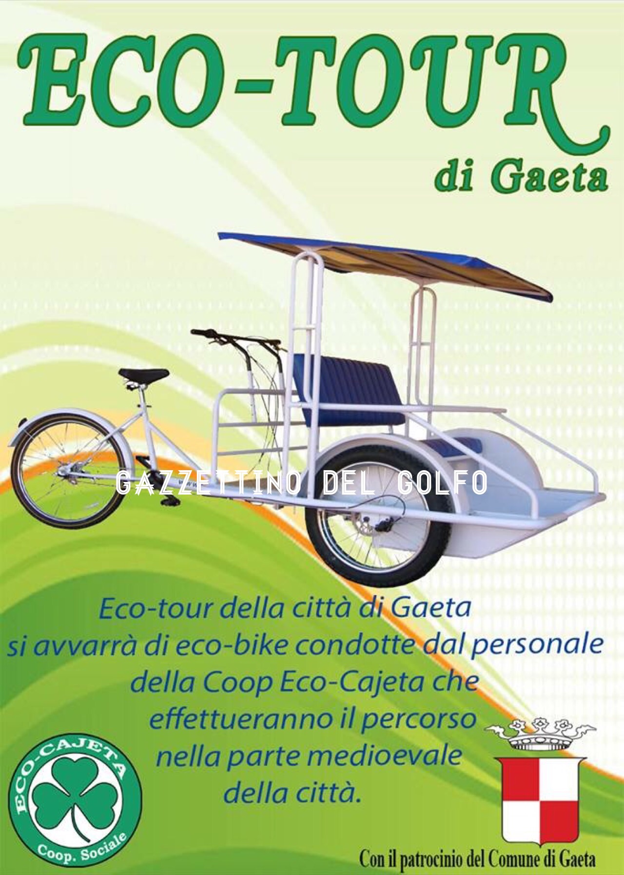 Gli Eco-Tour – realizzati mediante l’utilizzo di Eco-Bike munite di pedalata assistita, dotate di polizza assicurativa R.C., condotte da personale della cooperativa preparato a fornire informazioni sulla città, progettate per il trasporto persone con una particolare attenzione per i diversamente abili – forniranno un servizio di mobilità sostenibile urbana unendo ad esso finalità sociali, storiche, turistiche e culturali, quali attitudini imprescindibili per lo sviluppo cittadino. Il progetto è interamente finanziato da imprenditori locali che hanno acquistato le bike, poi donate alla Cooperativa Eco Cajeta.