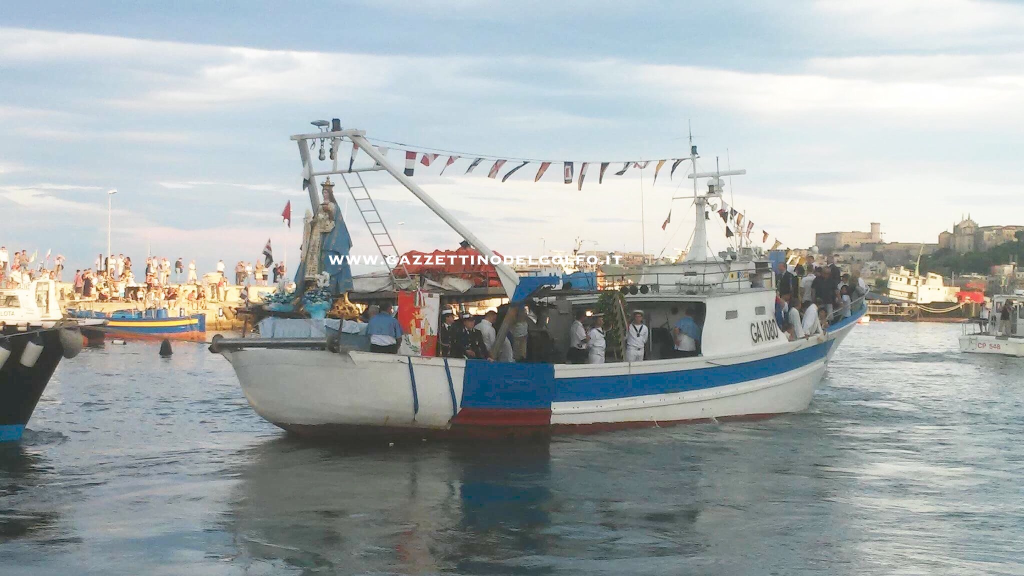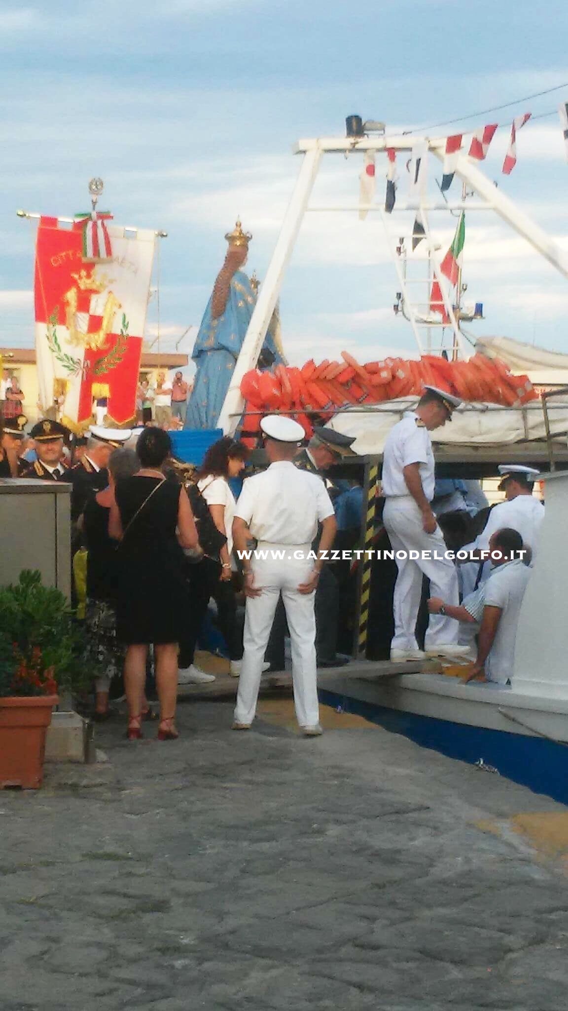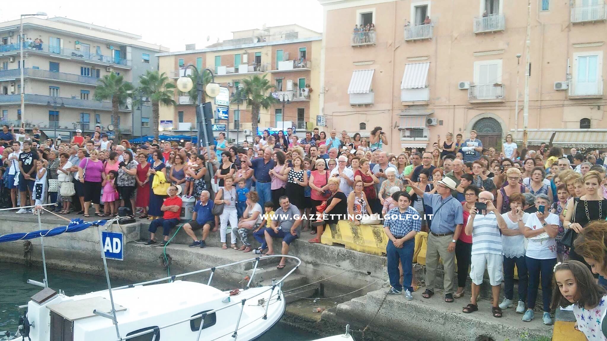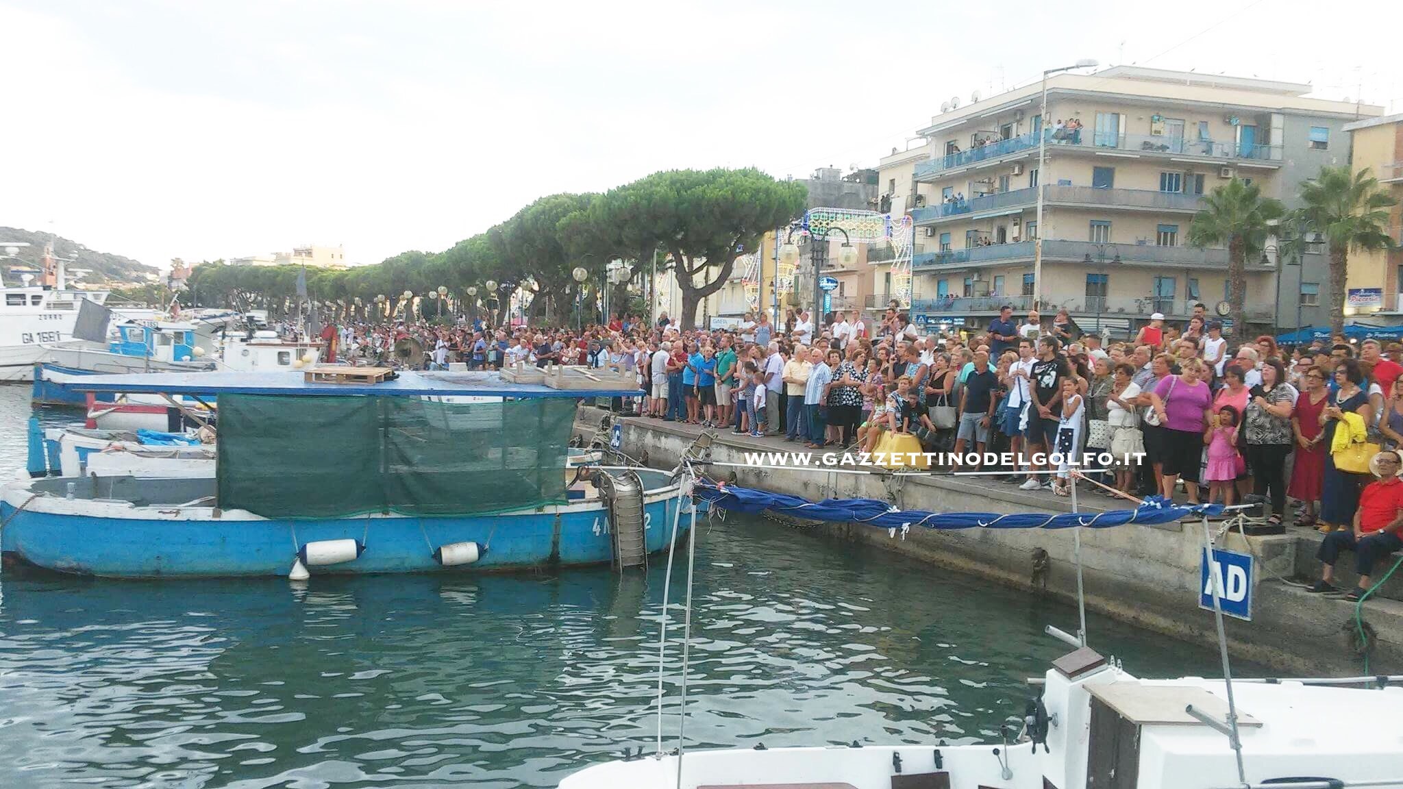 La processione, accompagnata per la prima volta dall’Arcivescovo Luigi Vari, è proseguita su un peschereccio che ha percorso il solito tragitto in mare dal Molo Peschiera sino a Punta Stendardo, ove alla presenza delle più alte Autorità civili e militari cittadine, è stata deposta in mare una corona per ricordare omaggiare i caduti in mare.