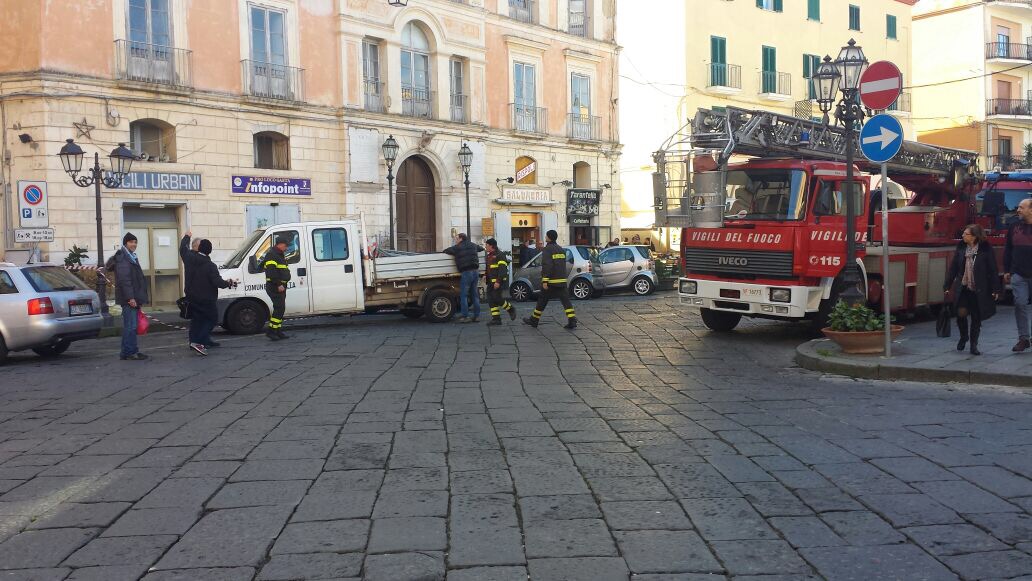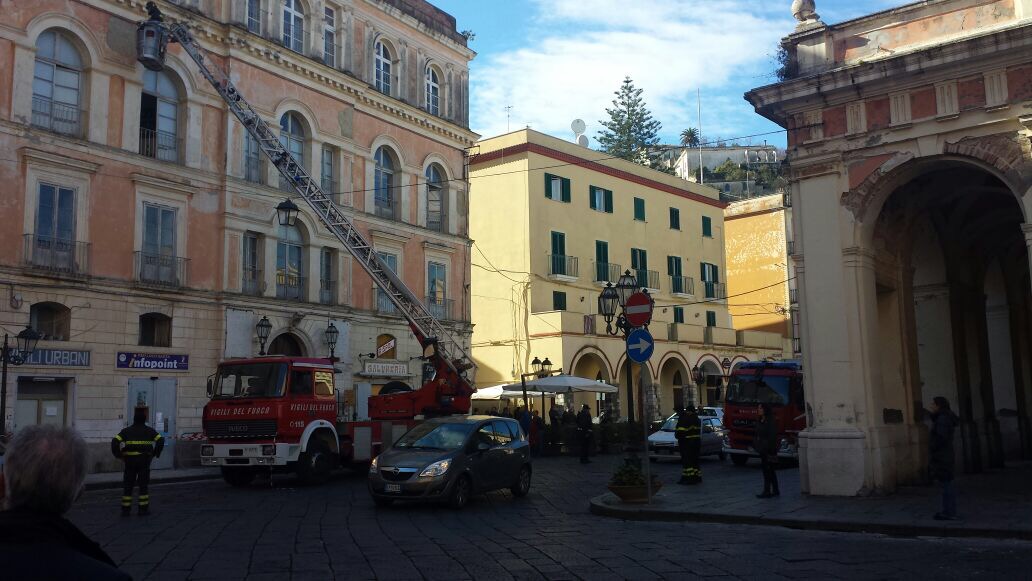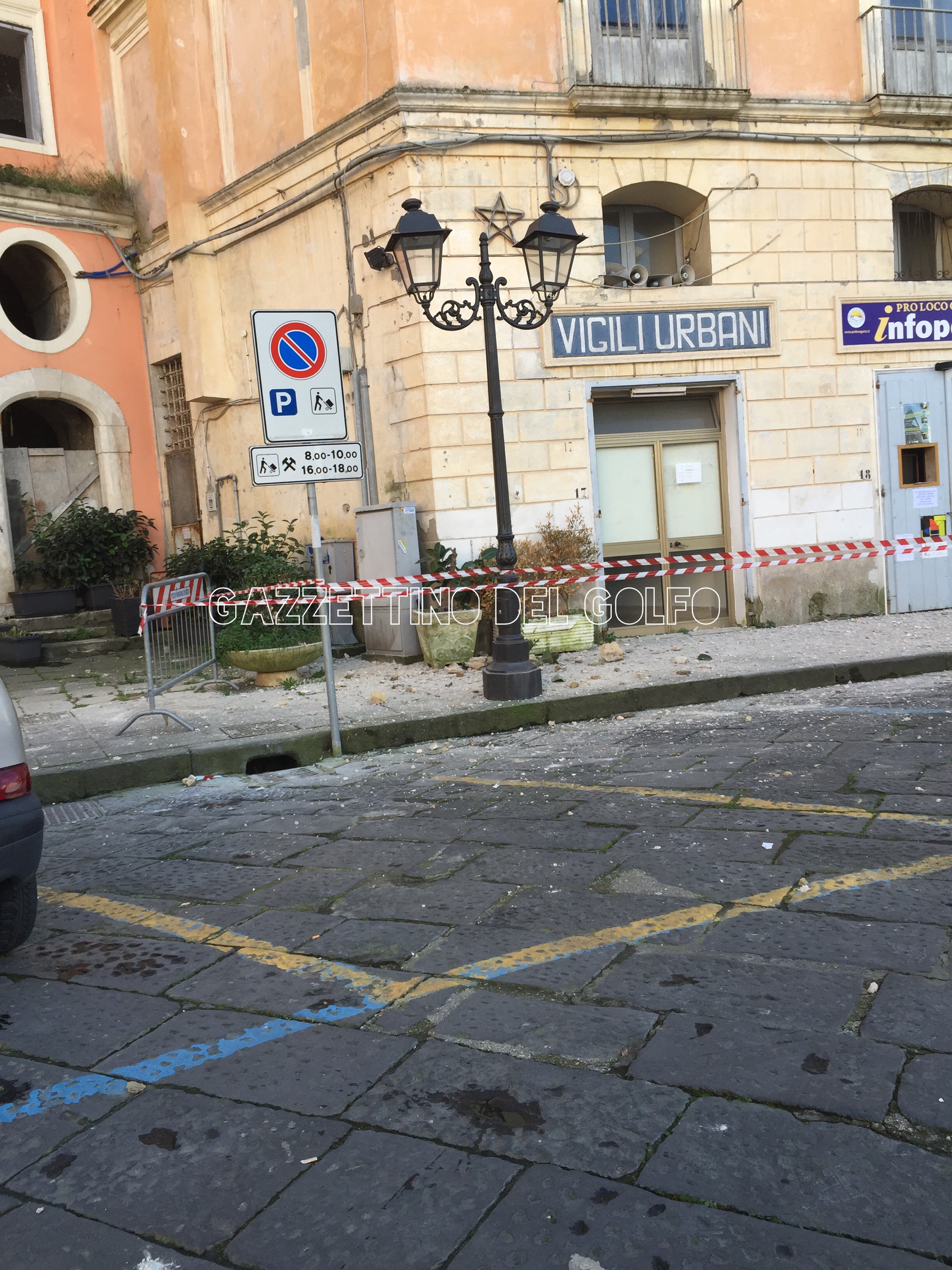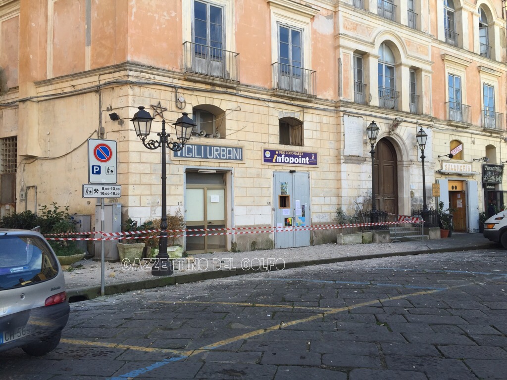 Ancora un crollo a Gaeta nell’area medievale. Questa mattina i Vigili del Fuoco della città pontina sono dovuti intervenire per mettere in sicurezza e transennare la zona antistante il vecchio Palazzo Comunale, oggi sede della Camera di Commercio, a causa del distacco del cornicione e di alcune parti di intonaco della facciata dello storico edificio. Non si registrano danni a cose o a persone.