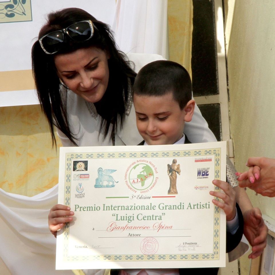Gianfrancesco Spina, conosciuto anche come “Il piccolo Lord”, è l’enfant prodige del cinema italiano. Protagonista del cortometraggio “Palline di pane” per la regia di Giuseppe Ferlito, è in concorso al Premio David di Donatello 2015; protagonista nel film “La zattera” con Renato Converso; ha da poco terminato di girare il film “Infernet” di Giuseppe Ferlito, che vede la partecipazione di Roberto Farnesi, Remo Girone, Katia Ricciarelli, Ricky Tognazzi. La menzione d’onore al Premio Internazionale Grandi Artisti “Luigi Centra” gli apre scenari e prospettive di notevole caratura.