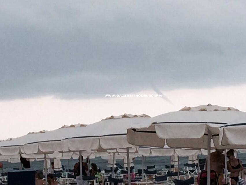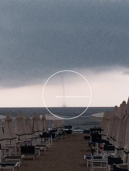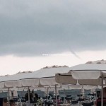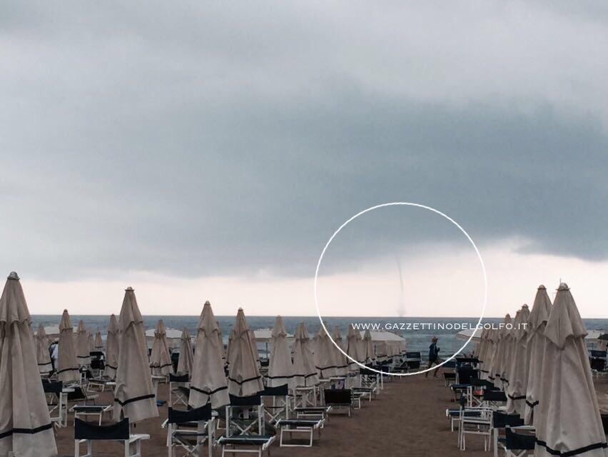 Queste le spettacolari immagini della tromba d’aria, forte ed improvvisa, sviluppatasi fortunatamente in mare a largo dell’arenile di Serapo.