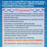 Seconda settimana: 13-17 luglio – AREA TECNICA : abilità tecnica (dominio della palla, passaggio e ricezione, contrasto dribbling e tiro in porta).
