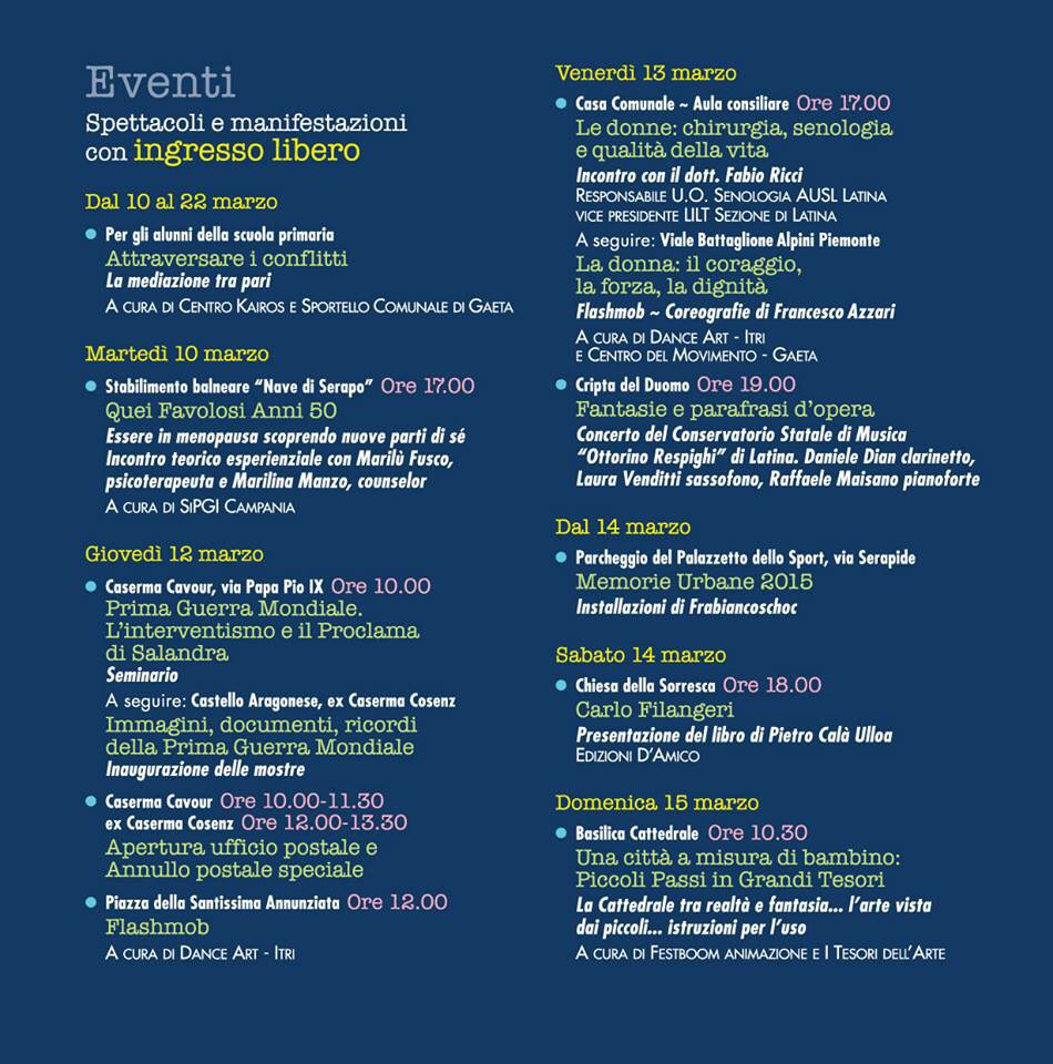 Dal 10 al 22 marzo quindi la città si riempirà di mostre, spettacoli e visite guidate ai musei. Ecco nel dettaglio il programma: