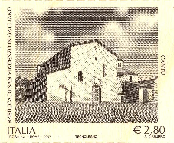 Il legno degli alberi, oltre ad essere un ottimo materiale da costruzione è stato utilizzato anche per stampare francobolli! Già, grazie ad una lamina di legno dello spessore di 0,3 mm, nel 2007 il nostro paese ha celebrato la Basilica di S. Vincenzo in Galliano. Il materiale per la realizzazione del francobollo è stato fornito dalla Tecnolegno (come riproposto in basso sul francobollo); il valore è privo di dentellatura e per la separazione degli esemplari è presente una tracciatura a tratteggio.