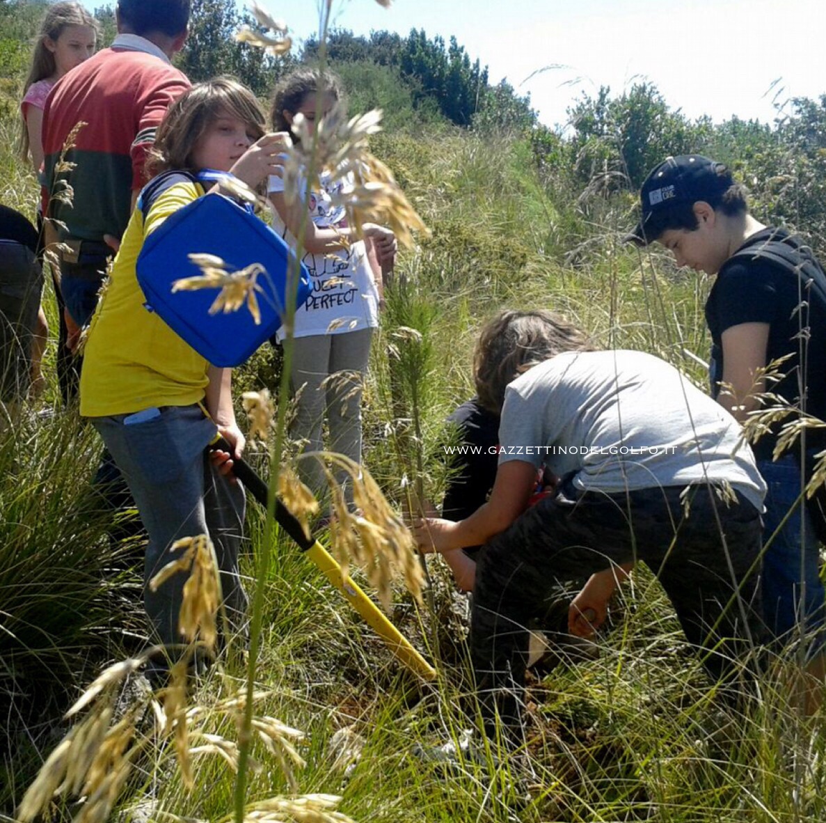 I ragazzi, “armati” di attrezzi da lavoro e aiutati da operai dell’Ente Parco, hanno piantato 4 esemplari di Pino D’Aleppo in un’area prossima alla polveriera Carolina.