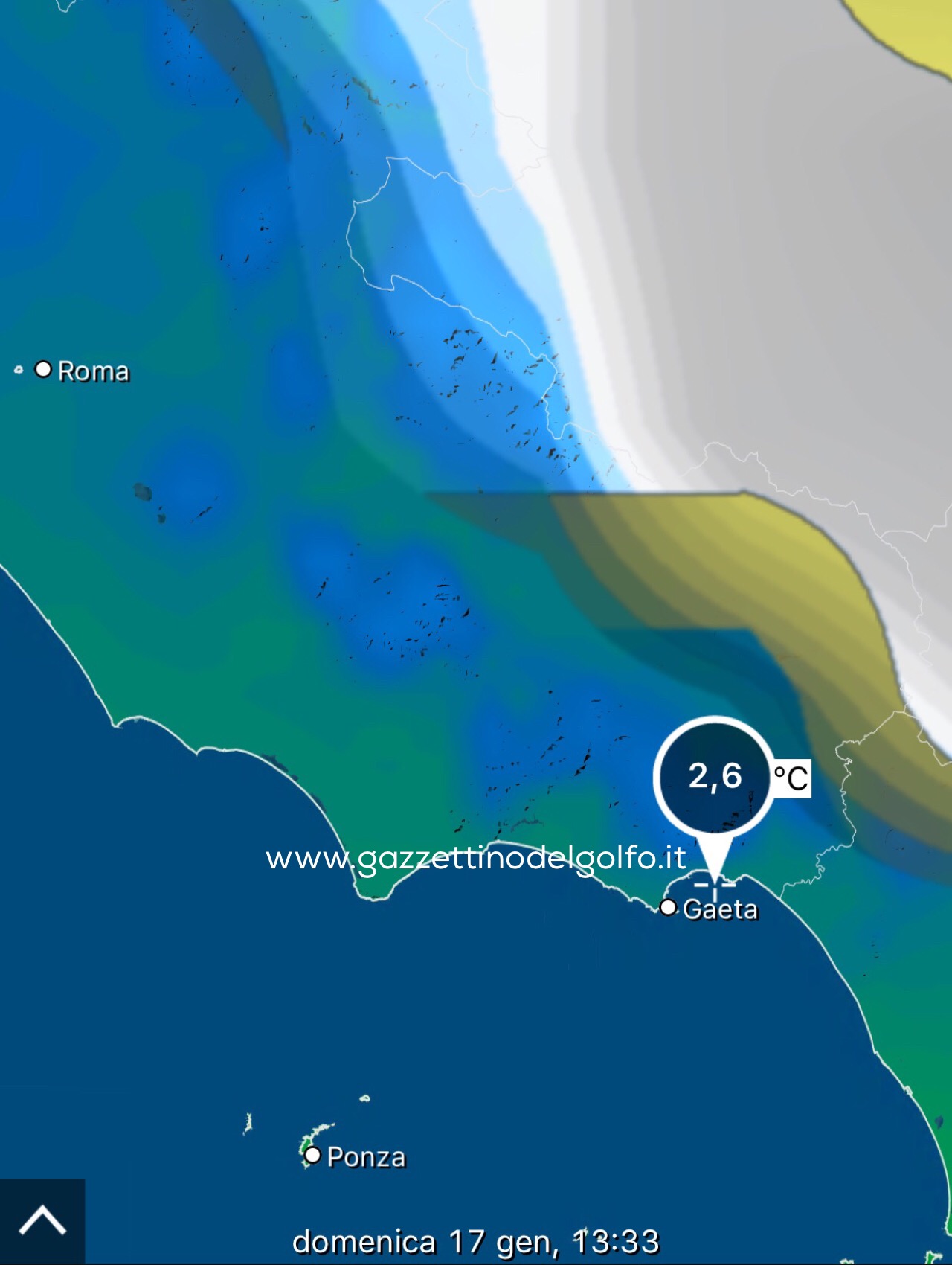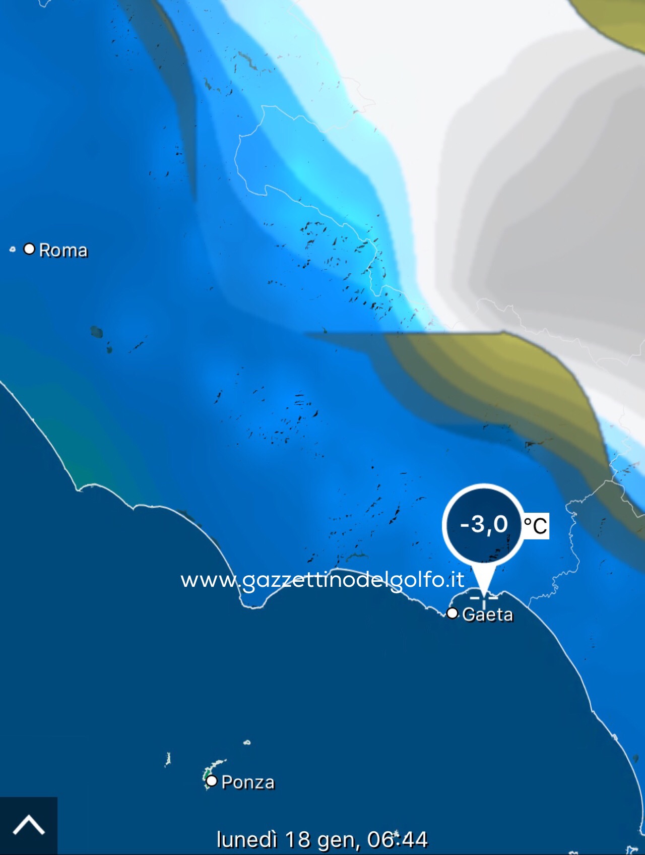Le temperature nel Golfo di Gaeta sono destinate ad abbassarsi nelle prossime ore, almeno stando a quanto emerge dalle proiezioni satellitari.