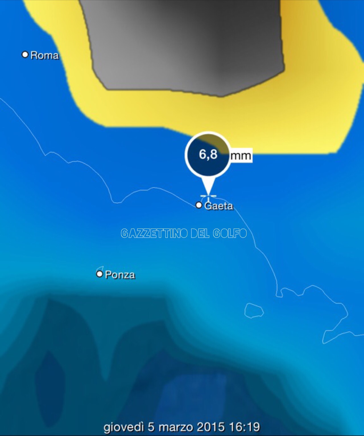Mare mosso, vento, sensibile calo delle temperature e forti rovesci, caratterizzeranno le prossime ore nel Golfo di Gaeta ed Isole Pontine.