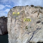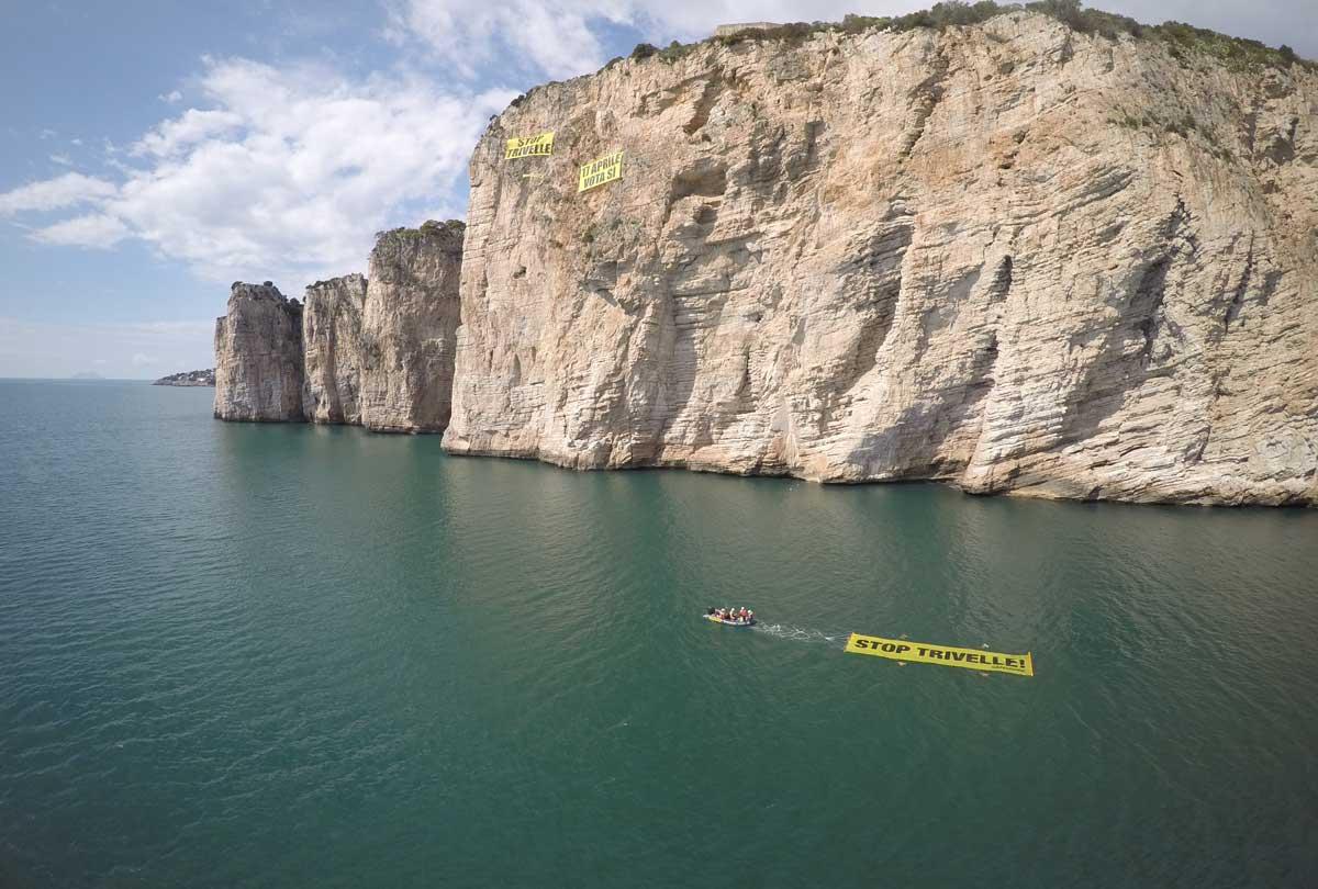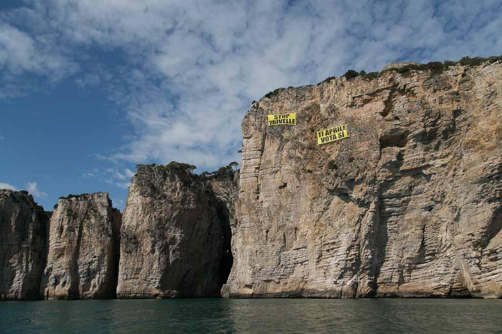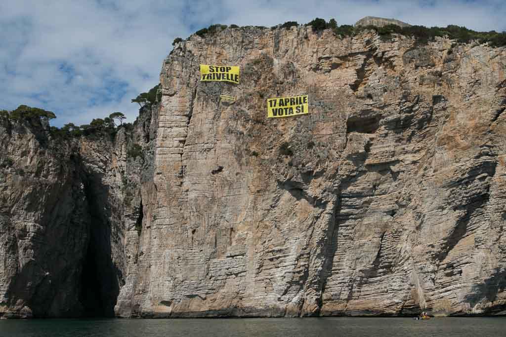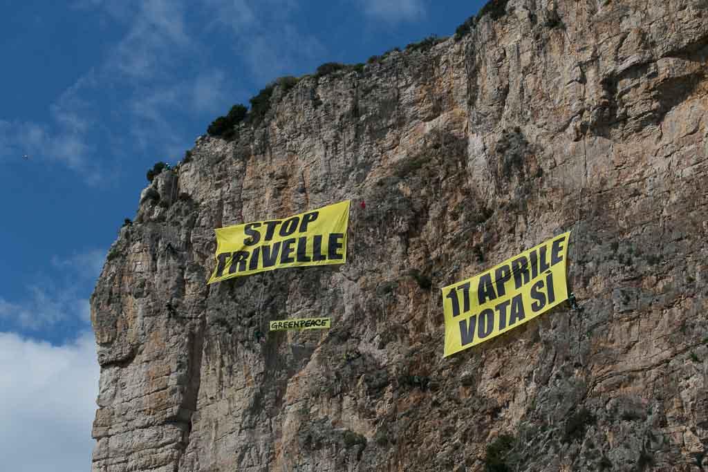Intanto, un altro team stendeva sulle acque antistanti la scogliera un secondo striscione che ribadiva anche dal mare il messaggio “Stop trivelle”. Secondo Greenpeace, sul referendum si sta facendo troppa poca informazione, rischiando di arrivare alla data del voto con una buona parte dell’opinione pubblica poco o per nulla informata. Greenpeace considera “questa strategia di strisciante sabotaggio del voto referendario un atteggiamento lesivo della democrazia”.