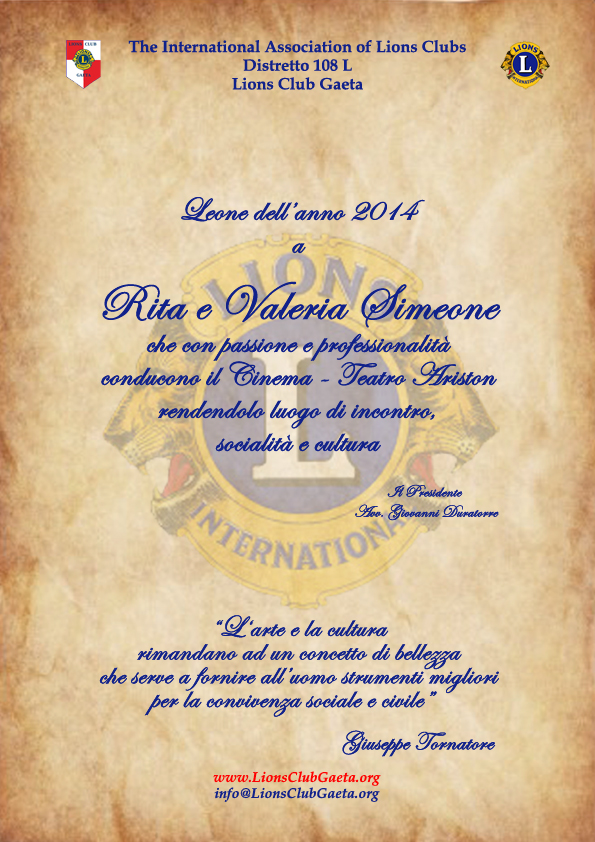 Momento centrale della serata è stata la consegna del “Leone dell’anno”, premio che il Club Lions di Gaeta, consegna a chi si è maggiormente distinto sul nostro territorio.