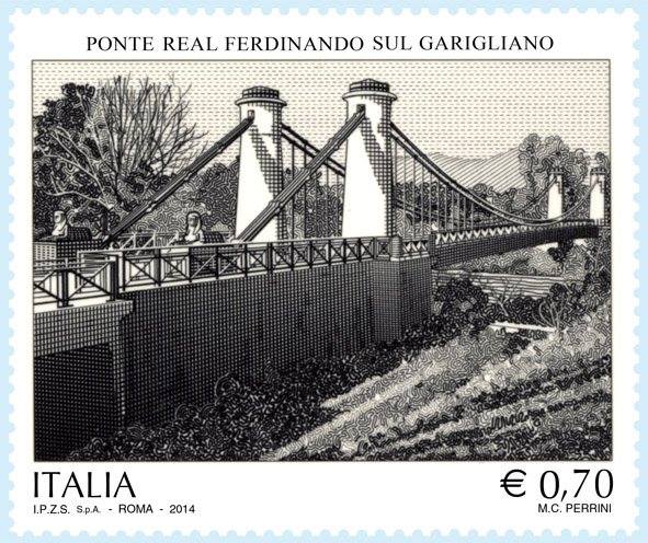Il prossimo 25 ottobre sarà una data importante per la città di Minturno. In quella giornata Poste Italiane emetterà un francobollo da 70 centesimi dedicato al Ponte Real Ferdinando sul Garigliano. Un evento eccezionale grazie alla proposta di Lorenzo Pellegrino, presidente del Circolo Filatelico “Marco Tullio Cicerone” di Formia, accolta in data 6 dicembre 2013 dal Ministero dello Sviluppo Economico, che lo ha inserito nel programma filatelico del 2014.