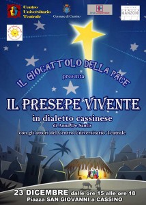 La compagnia del Centro Universitario Teatrale di Cassino inaugurerà le feste natalizie con una performance interattiva il prossimo 23 dicembre, portando in piazza la raffigurazione animata del presepe vivente. Una rappresentazione indubbiamente tra le più tradizionali, ravvivata, però, dall’innovativa chiave espressiva scelta, ossia quella del dialetto locale, e dall’improvvisazione collettiva dei cinquanta attori coinvolti, interpreti delle più popolari figure del presepe. Un vero e proprio happening natalizio, che porta in scena tradizione, arte, estro e coinvolgimento di tutti i presenti, figuranti e spettatori. La location è immersa nel cuore della città e le essenziali strutture scenografiche, vale a dire una classica capanna, così come gli adattamenti curati da Anna De Sanctis creeranno un filo diretto con la cittadinanza. L’interazione con il pubblico e l’estemporaneità delle esibizioni, ripetute in tre intervalli nell’arco di tutto il pomeriggio a partire dalle ore 15:00, saranno il leitmotiv della performance proposta dal Cut e realizzata in collaborazione con la Cooperativa Arca, per la regia di Giorgio Mennoia e Antonio Lauritano, e l’organizzazione e il coordinamento di Marco Mattei.