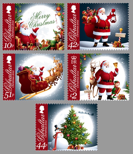 Altri valori molto rappresentativi del Natale sono certamente quelli emessi dalle Poste di Gibilterra nel 2012 che raffigurano “Babbo Natale” che consegna doni a bordo della slitta trainata dalle renne o, semplicemente, un pupazzo di neve con un albero natalizio. Stesso soggetto, con l’aggiunta di una slitta e di un tipico paesaggio natalizio è stato utilizzato dalla Svizzera nel 2011.