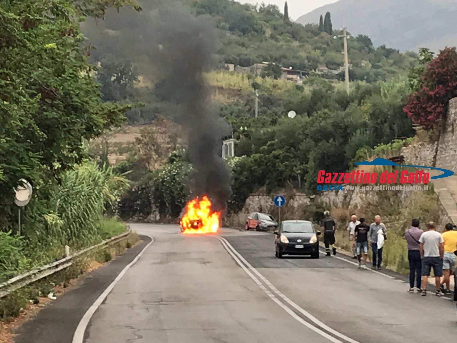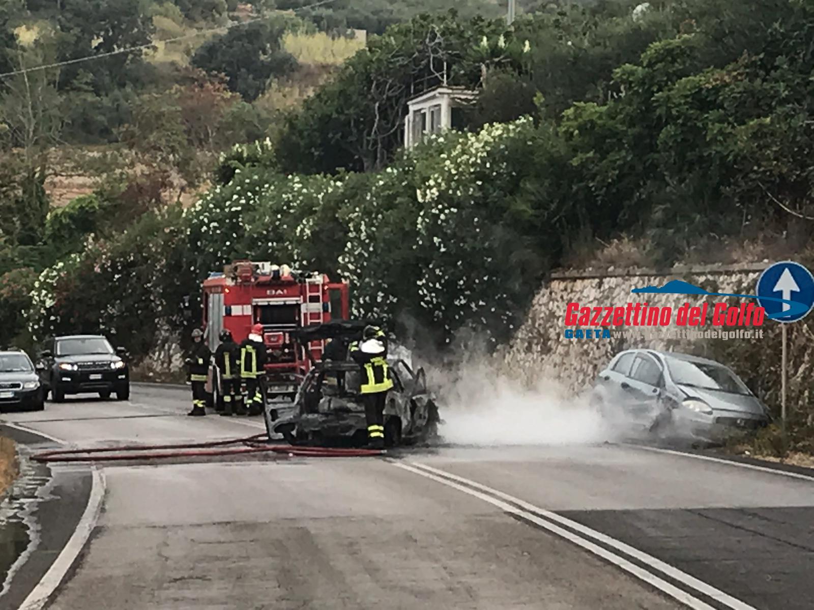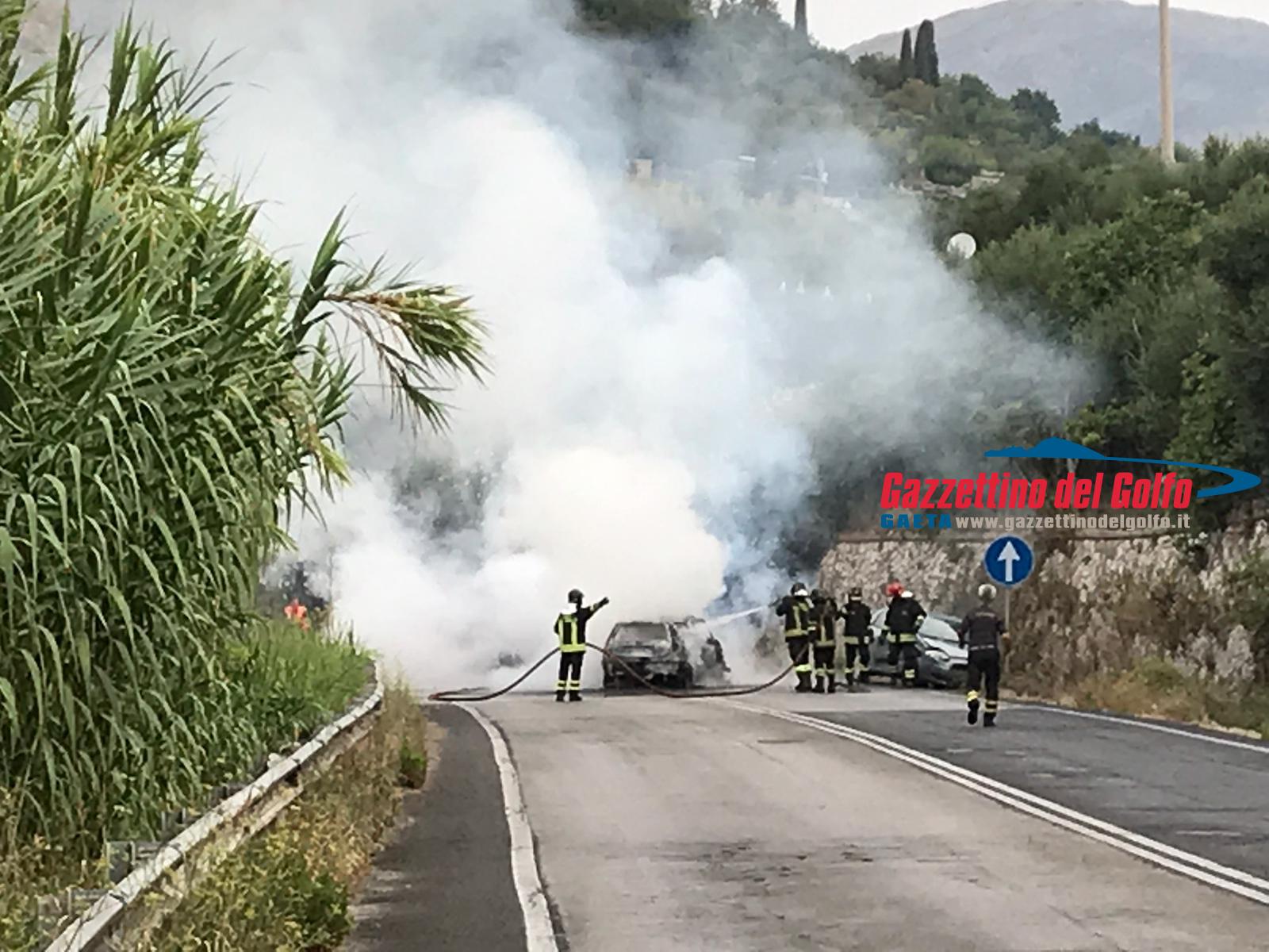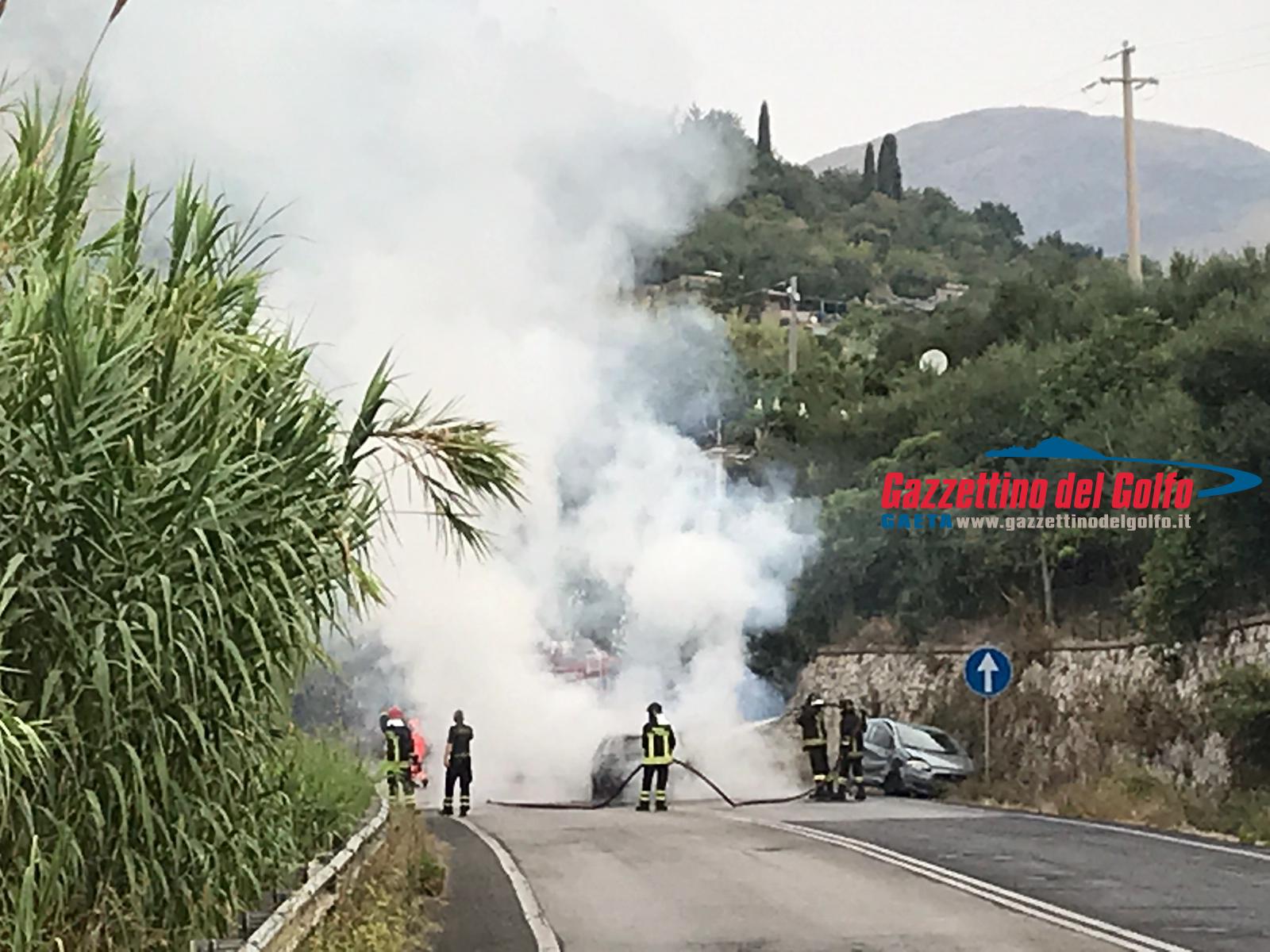 Auto in fiamme sulla Flacca, all’altezza di Gaeta, alle ore 7.15 circa di questa mattina.