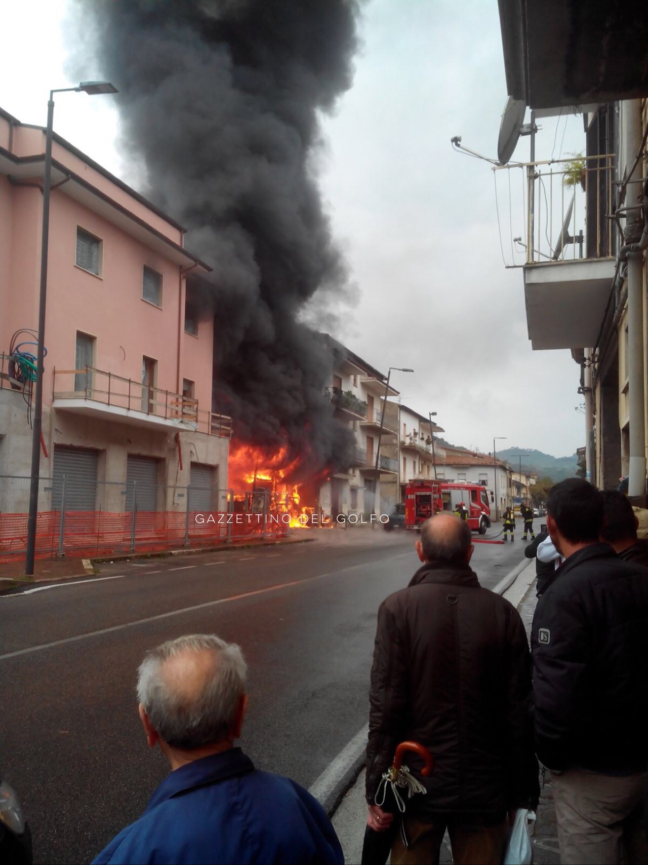 È andato in fiamme un locale nella centralissima via Appia a Itri.