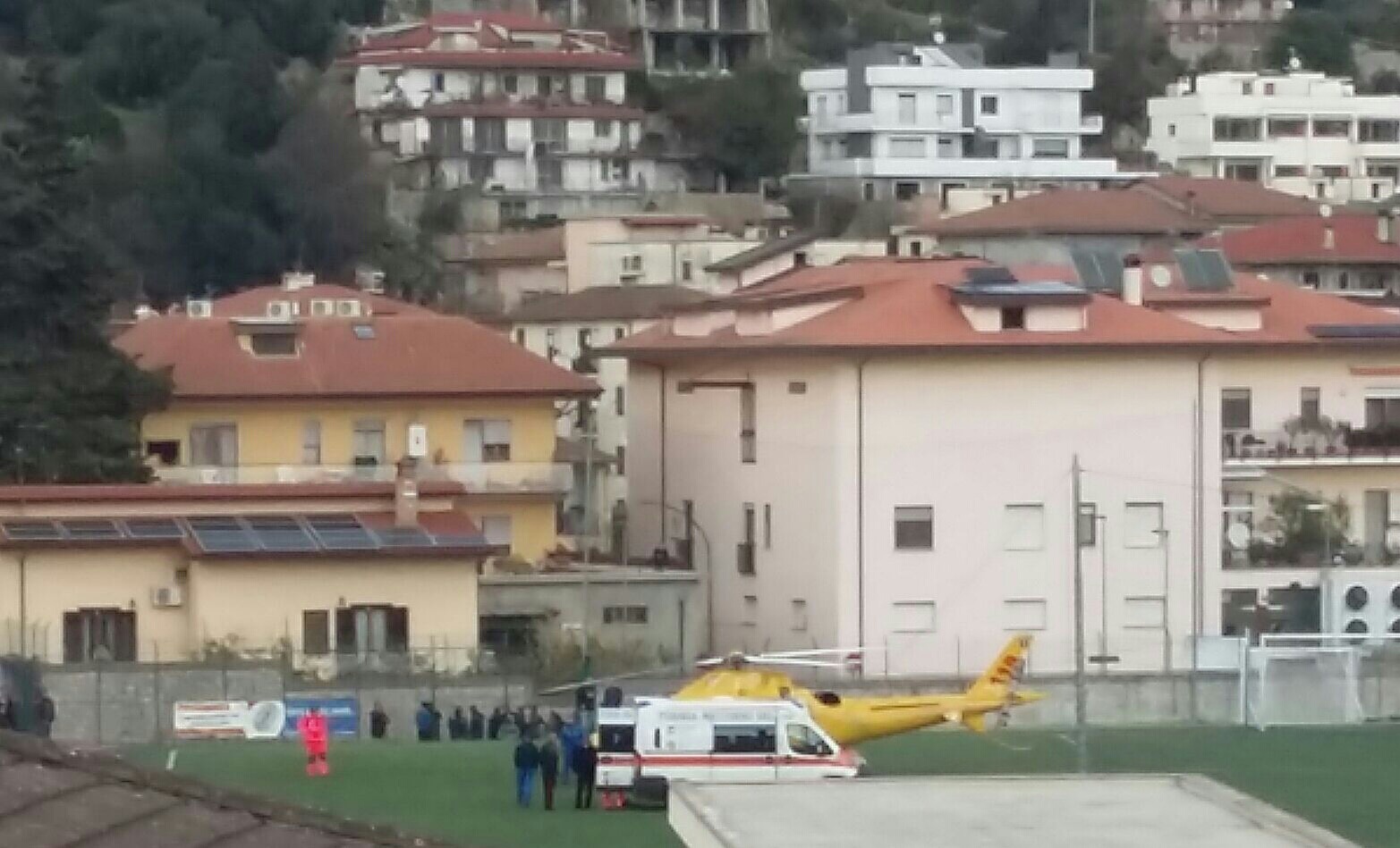 Necessario l’intervento dell’eliambulanza, per soccorrere il conducente, che è atterrata al campo sportivo.