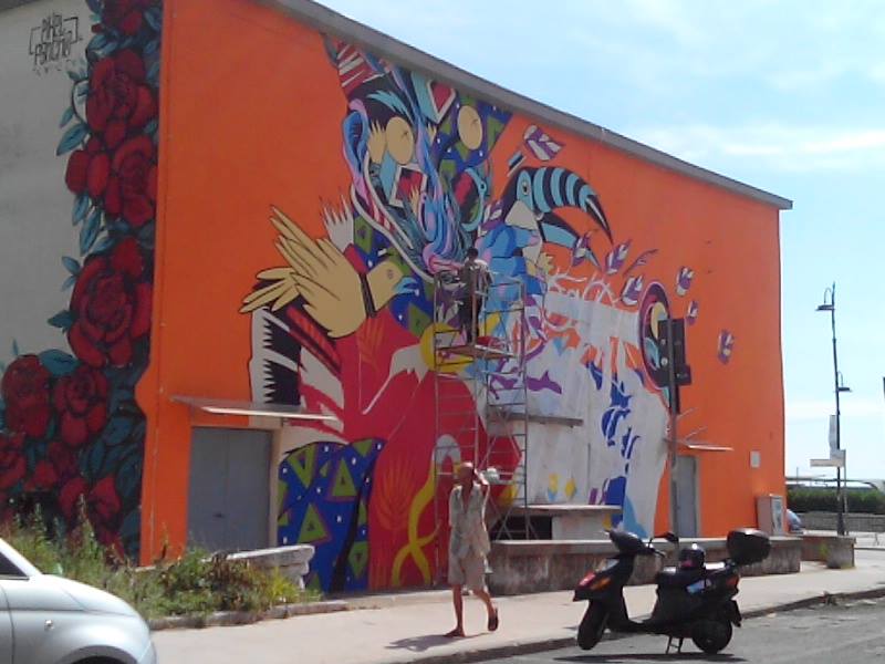 Al suo posto da oggi un nuovo murales, bello e colorato, realizzato dai brasiliani ‘Bicicleta Sem Freio’, nell’ambito dello street art festival “Memorie Urbane”.