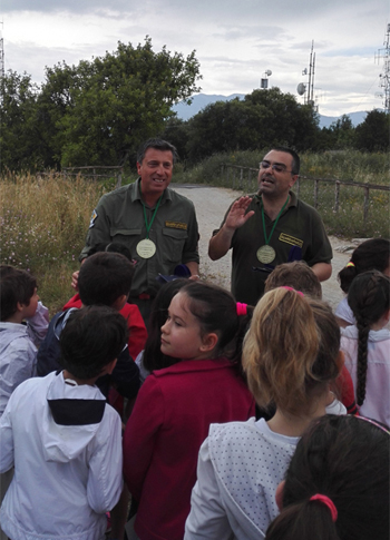 Prima della caccia al tesoro, ai ragazzi è stata fornita una mappa e poi è stato richiesto di trovare e riconoscere diverse specie vegetali dislocate lungo il percorso indicato nella mappa. La giornata si è conclusa con la consegna degli attestati, regali, torta e con una sorpresa finale: la II A ha consegnato ai guardiaparco Leopoldo Turco e Iolando Santella, che hanno supportando i ragazzi in alcune fasi dello sviluppo del taccuino, una medaglia che da un lato riproduce l’illustrazione di un guardiaparco e dall’altra contiene una dedica speciale: “un grazie di cuore per averci insegnato l’amore e il rispetto per la natura”.