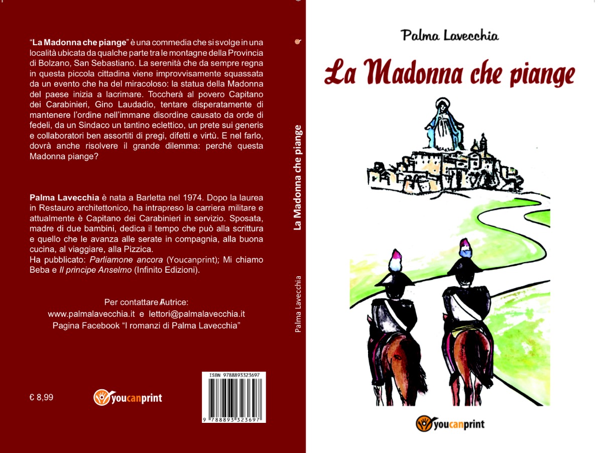 “Un romanzo che evidenzia innanzitutto quel che succede all’interno di una simpatica Compagnia Carabinieri, e per chi conserva apprezzamento e curiosità per la nostra Istituzione è un regalo di non poco conto. Faccio un parallelo: da piccola impazzivo per i formicai, mi affascinavano moltissimo e passavo giornate a fissarli e a chiedermi cosa accadesse lì dentro: ecco, chi apprezza l’Arma ora può leggere quel che verosimilmente accadrebbe se si verificasse un evento straordinario, come può essere una statua della Madonna che inizia inspiegabilmente a piangere. E poi, tutto quello che accade anche al di fuori di quelle quattro mura, con le orde di fedeli che, chissà, in un momento come questo, in cui ci sentiamo particolarmente vulnerabili, sarebbero davvero tantissimi.”