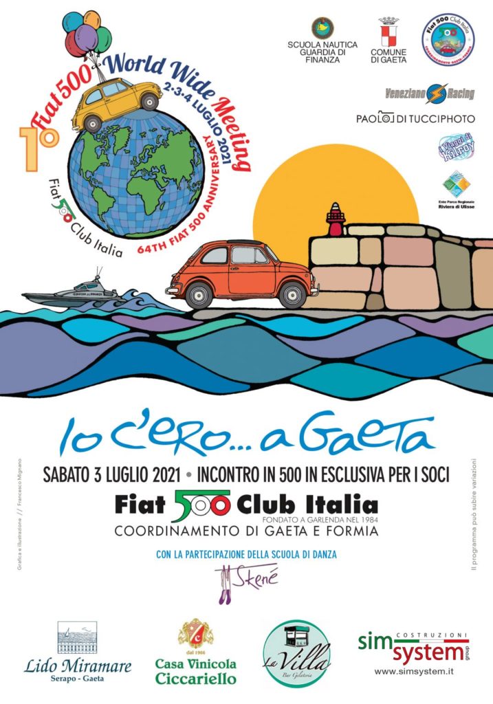 Al Fiat 500 World Wide Meeting aderisce anche la sezione di Gaeta-Formia del Fiat 500 Club Italia, che ha organizzato per sabato 3 luglio un incontro nella città del Golfo per i cinquecentisti della zona, con la consueta collaborazione dell’Amministrazione Comunale di Gaeta che, oltre al Patrocinio, ormai da sei anni promuove gli eventi organizzati dal Coordinamento locale del Fiat 500 Club Italia, riconoscendo in questi le efficaci finalità di promozione turistica e di riscoperta del territorio, tanto da richiamare ogni anno più di un centinaio di cinquecentisti da tutta Italia.