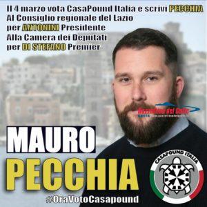 Mauro Pecchia, 29 anni nato a Gaeta, è candidato di CasaPound alla Camera dei Deputati ed al Consiglio regionale del Lazio. Ha studiato Scienze Storiche, del territorio e cooperazione internazionale presso le Università Sapienza e Roma Tre, ha lavorato e fatto esperienza nel mondo dell’informazione, dei beni culturali e della piccola impresa.