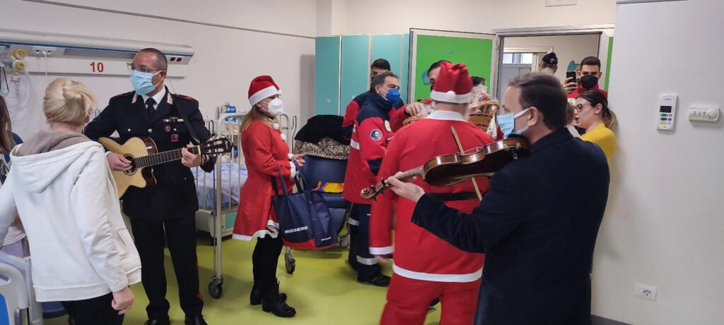 Nella circostanza, un Babbo Natale vestito di tutto punto, ha consegnato i doni ai piccolissimi bambini ricoverati, il tutto nel rispetto delle previste normative anti covid.