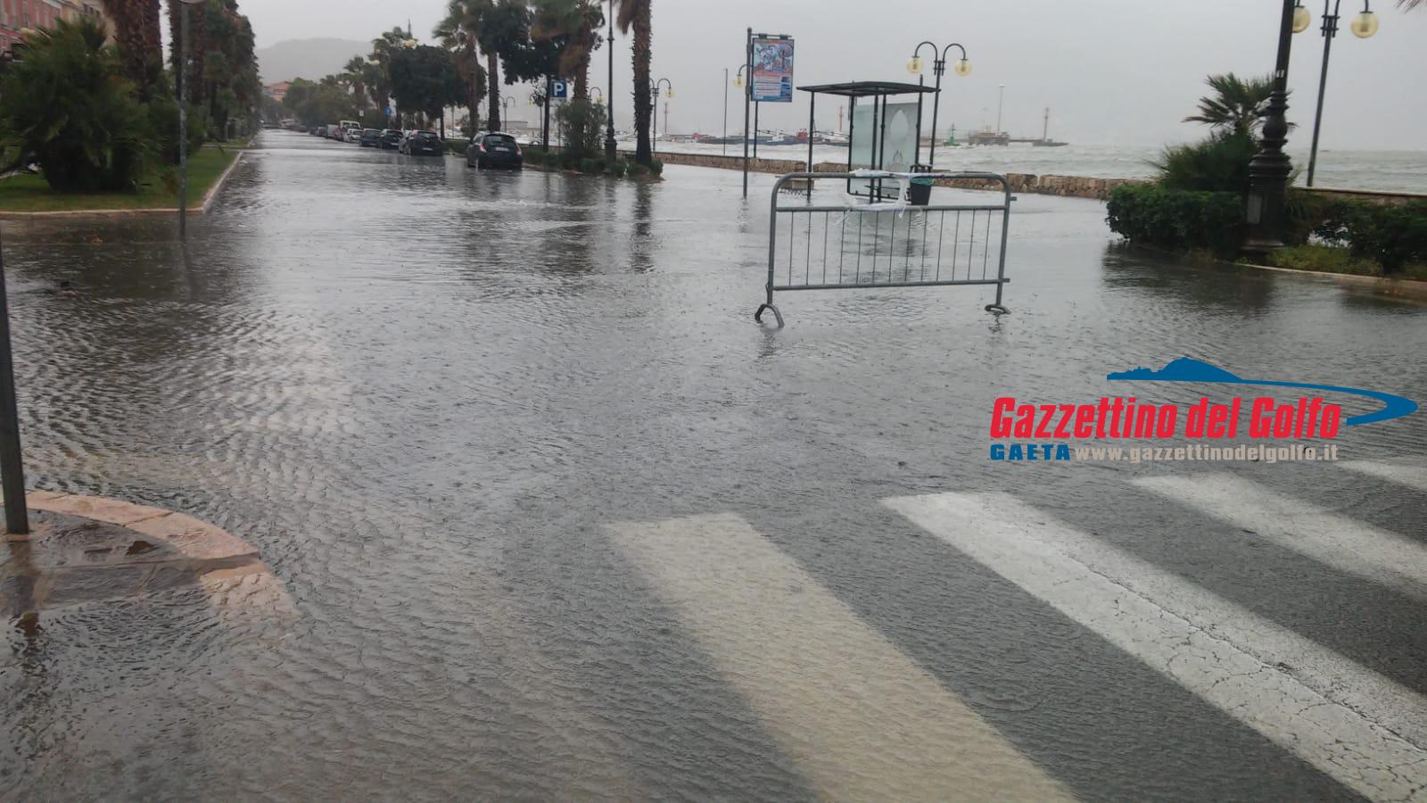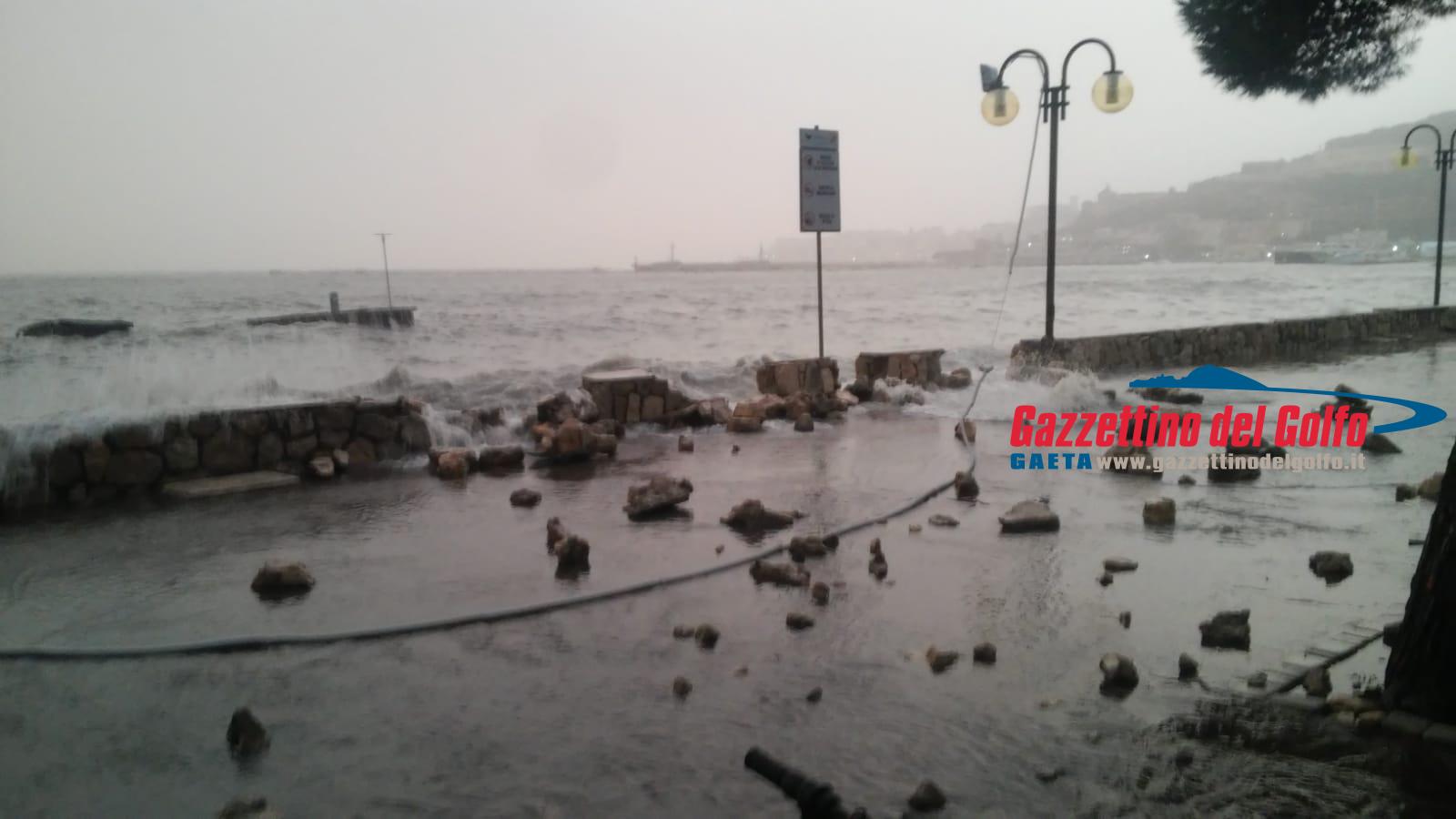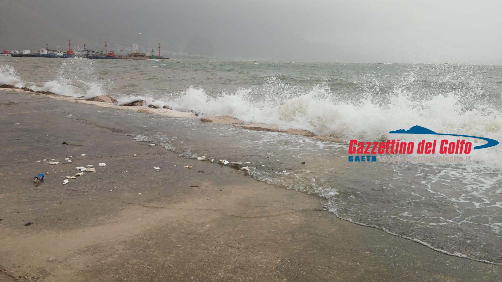A Gaeta un tratto di lungomare Caboto è stato chiuso alla circolazione stradale in quanto allagato dalle onde del mare che sferza a causa delle fortissime raffiche di vento.