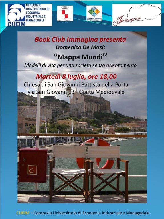 L’iniziativa, promossa dal Book Club “Immagina”, dal titolo “Mappa Mundi – Modelli di vita per una società senza orientamento”, vuole stimolare un confronto sui temi del mercato del lavoro, lo sviluppo socio-economico, l’organizzazione delle imprese e dei grandi sistemi.